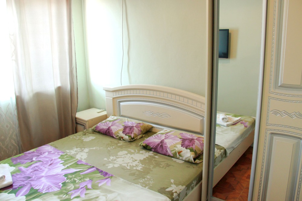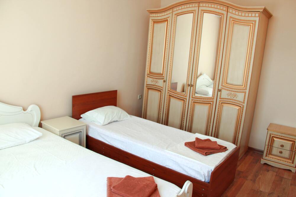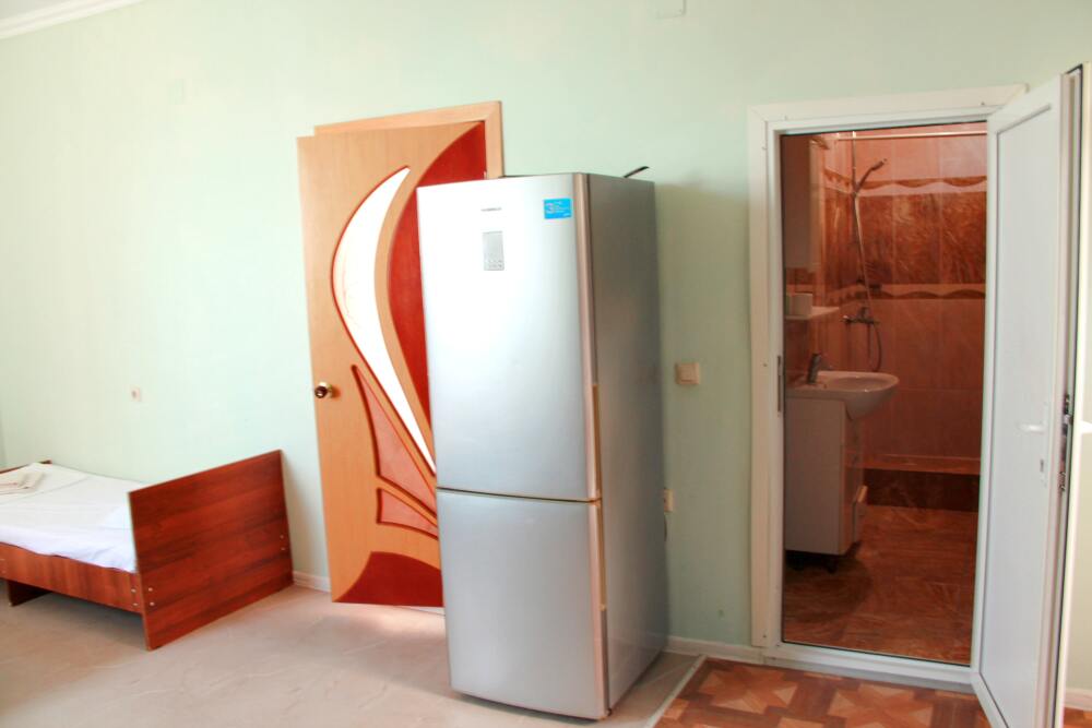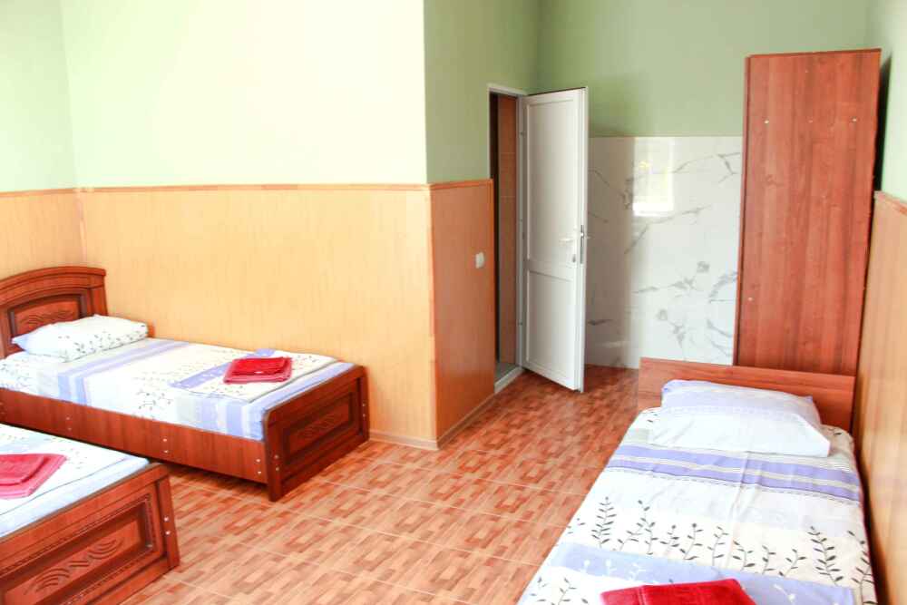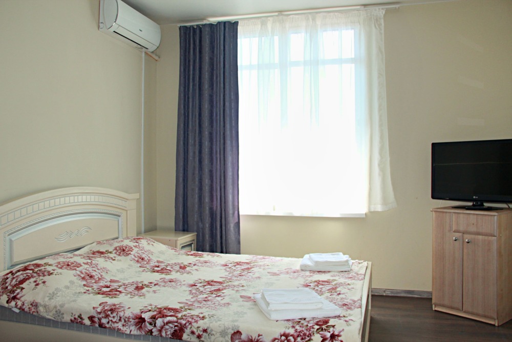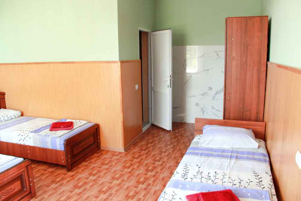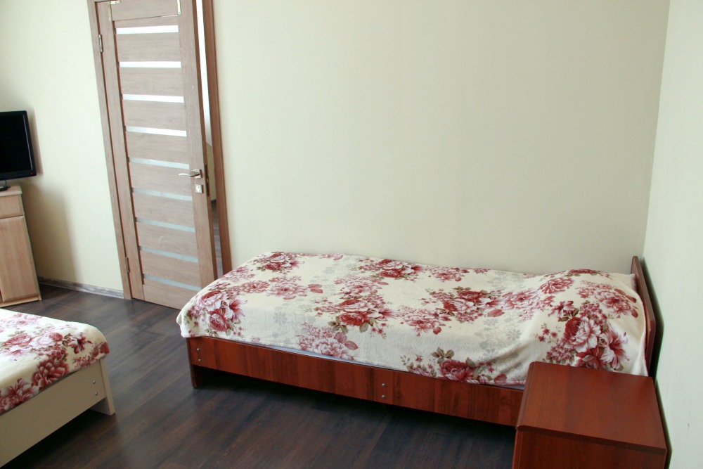 4-х местный семейный номер категории «Стандарт» - однокомнатный уютный номер, 1 этаж, 2 корпус, отдельный вход, в номере – 4 раздельные кровати, комод, 2 шкафа для одежды, журнальный стол, телевизор, кондиционер. Санузел (душ, туалет, раковина) в номере. Окна номера во двор. Рядом с номером стиральная машина и летняя кухня.