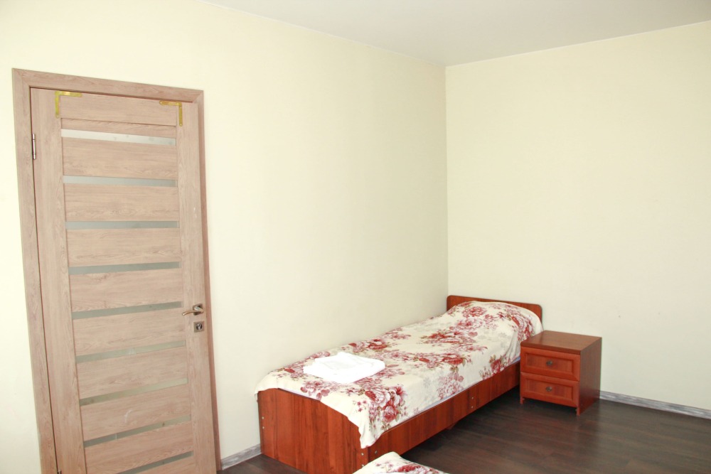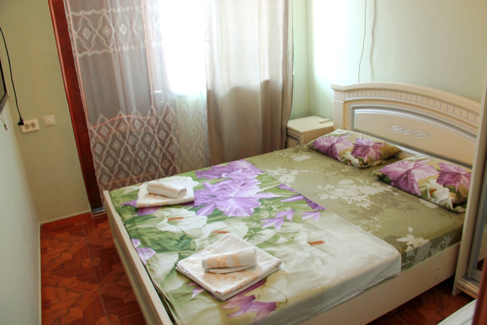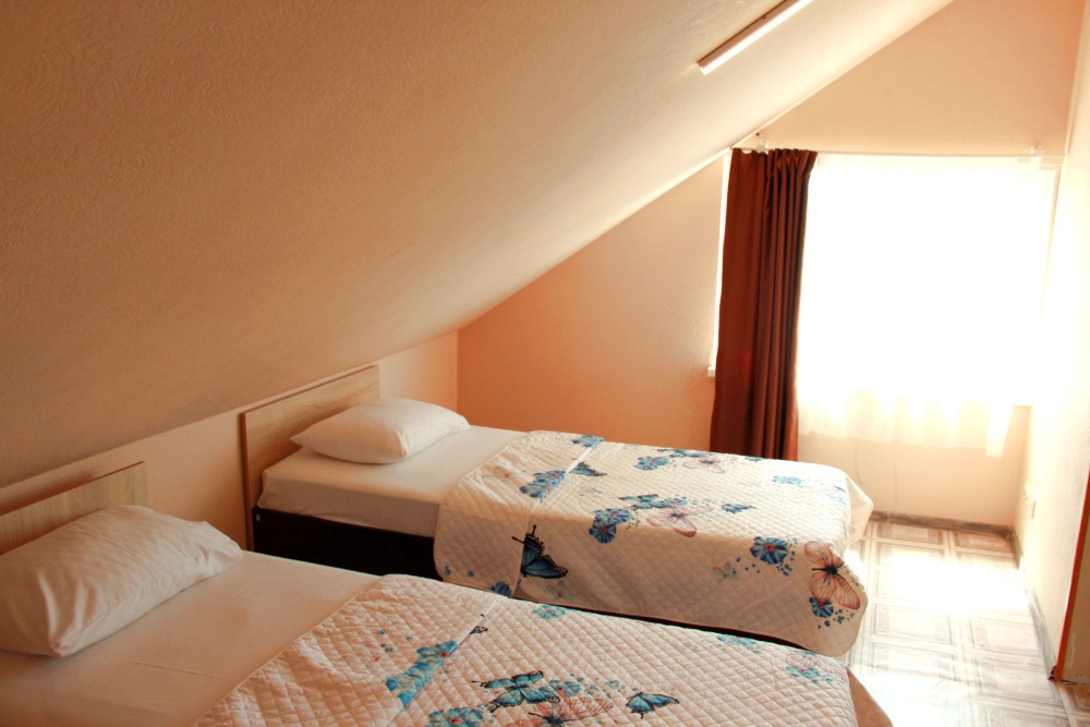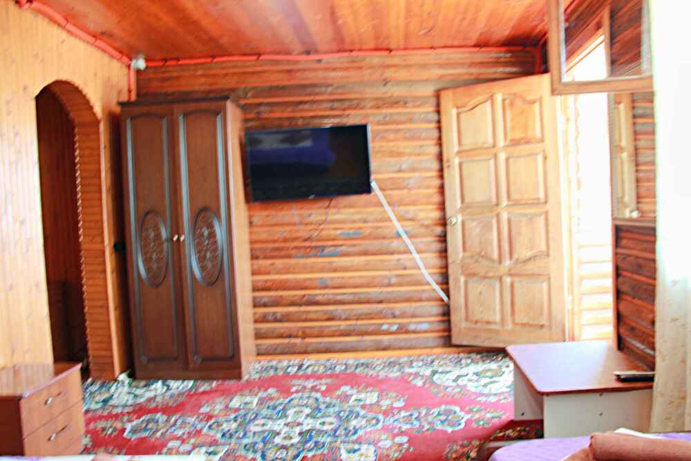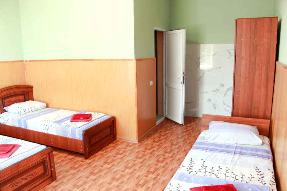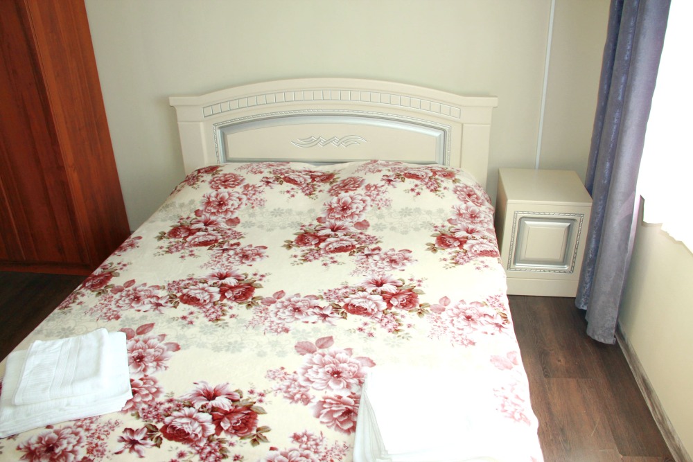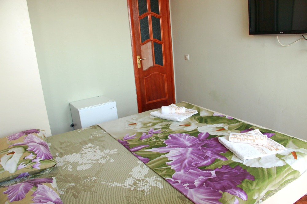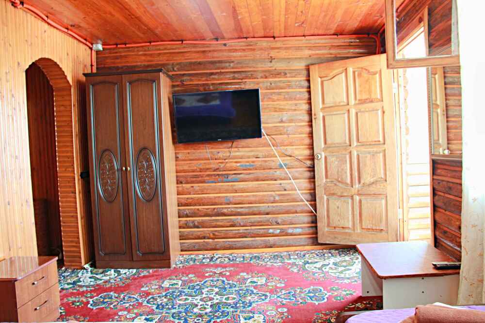 4-х местный семейный номер категории «Стандарт» - однокомнатный уютный номер, 1 этаж, 2 корпус, отдельный вход, в номере – 4 раздельные кровати, комод, 2 шкафа для одежды, журнальный стол, телевизор, кондиционер. Санузел (душ, туалет, раковина) в номере. Окна номера во двор. Рядом с номером стиральная машина и летняя кухня.