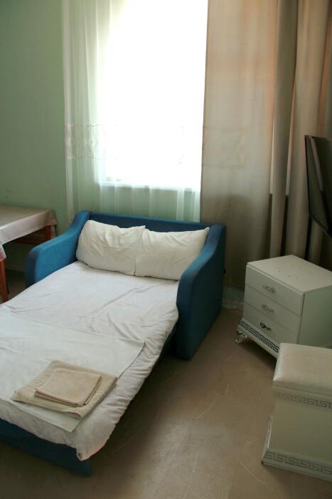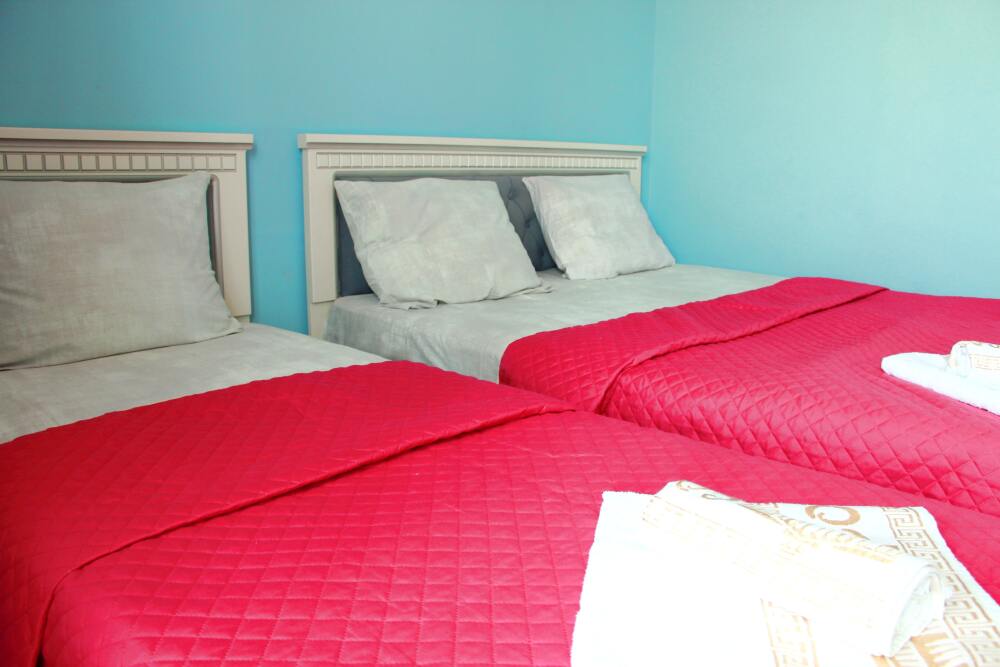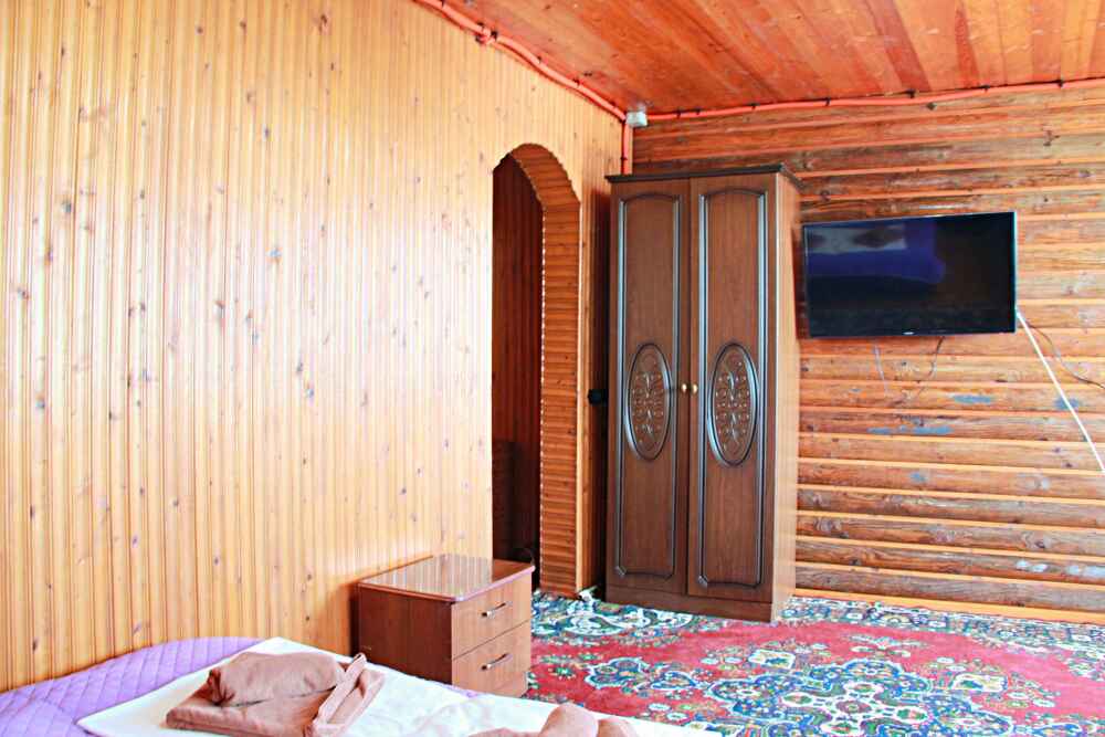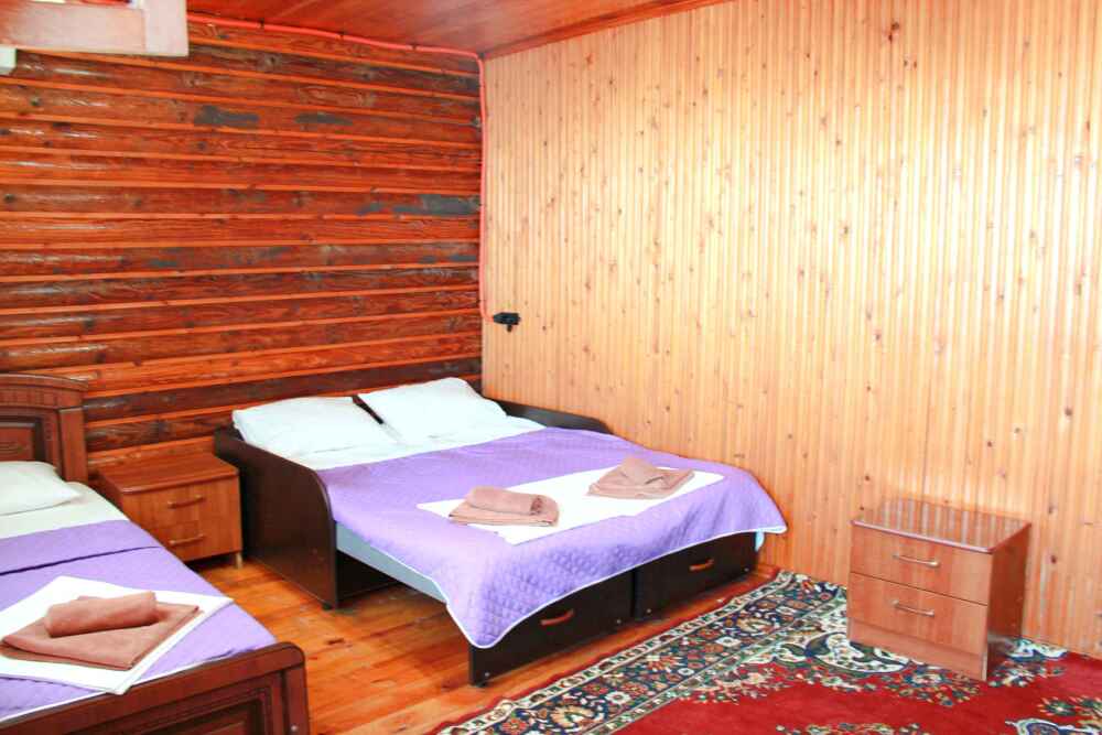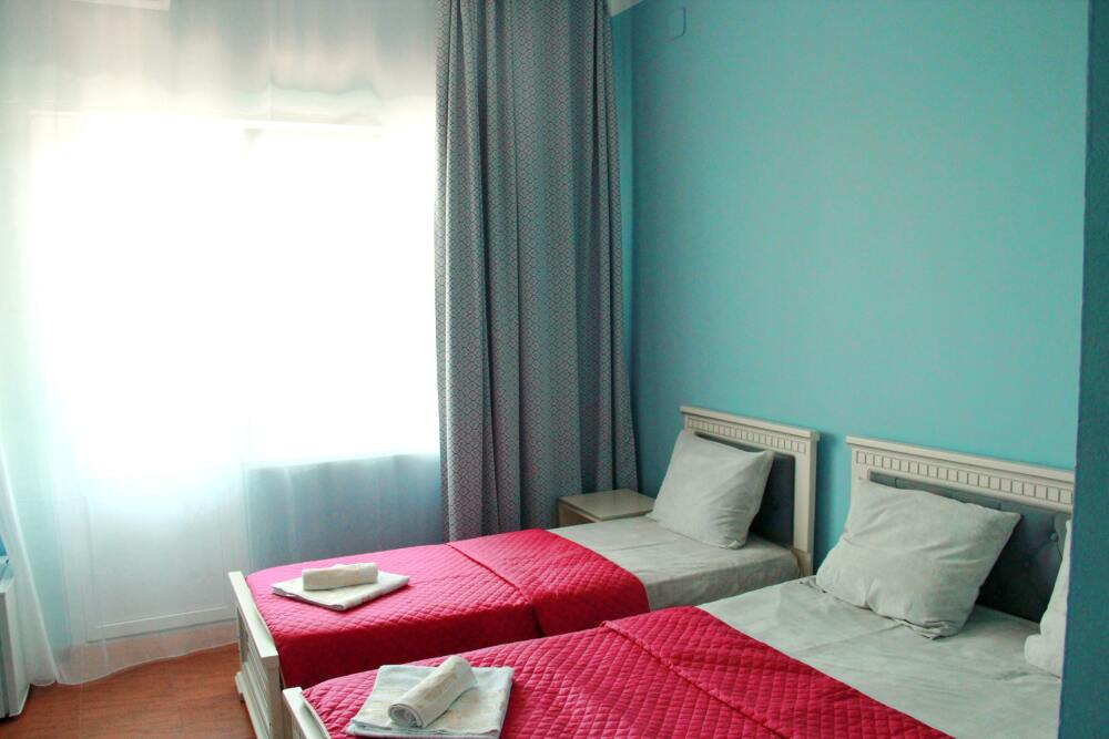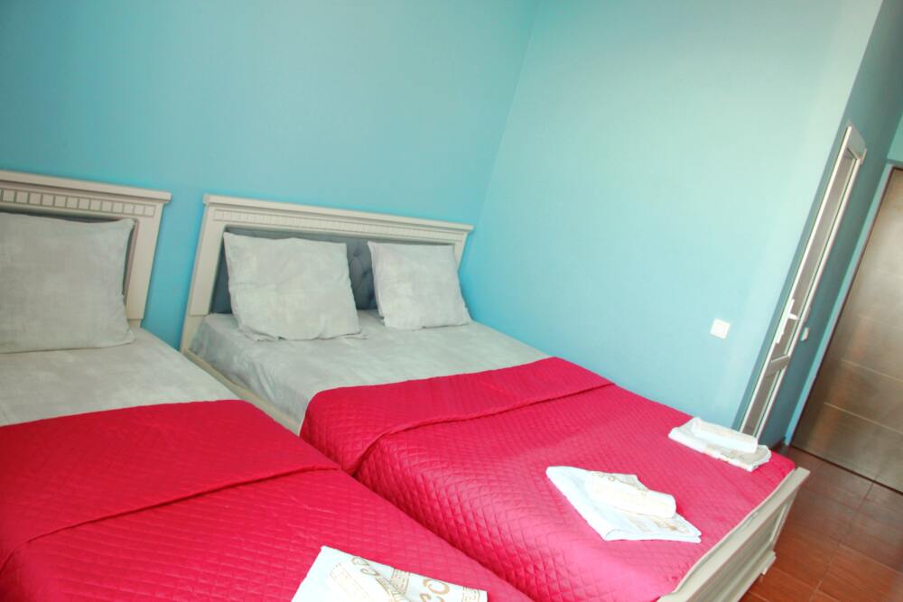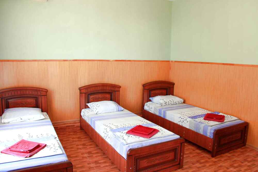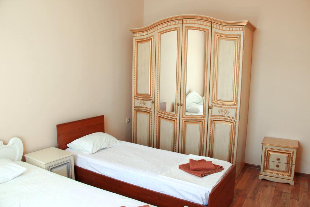 4-х местный семейный номер категории «Стандарт» - однокомнатный уютный номер, 1 этаж, 2 корпус, отдельный вход, в номере – 4 раздельные кровати, комод, 2 шкафа для одежды, журнальный стол, телевизор, кондиционер. Санузел (душ, туалет, раковина) в номере. Окна номера во двор. Рядом с номером стиральная машина и летняя кухня.