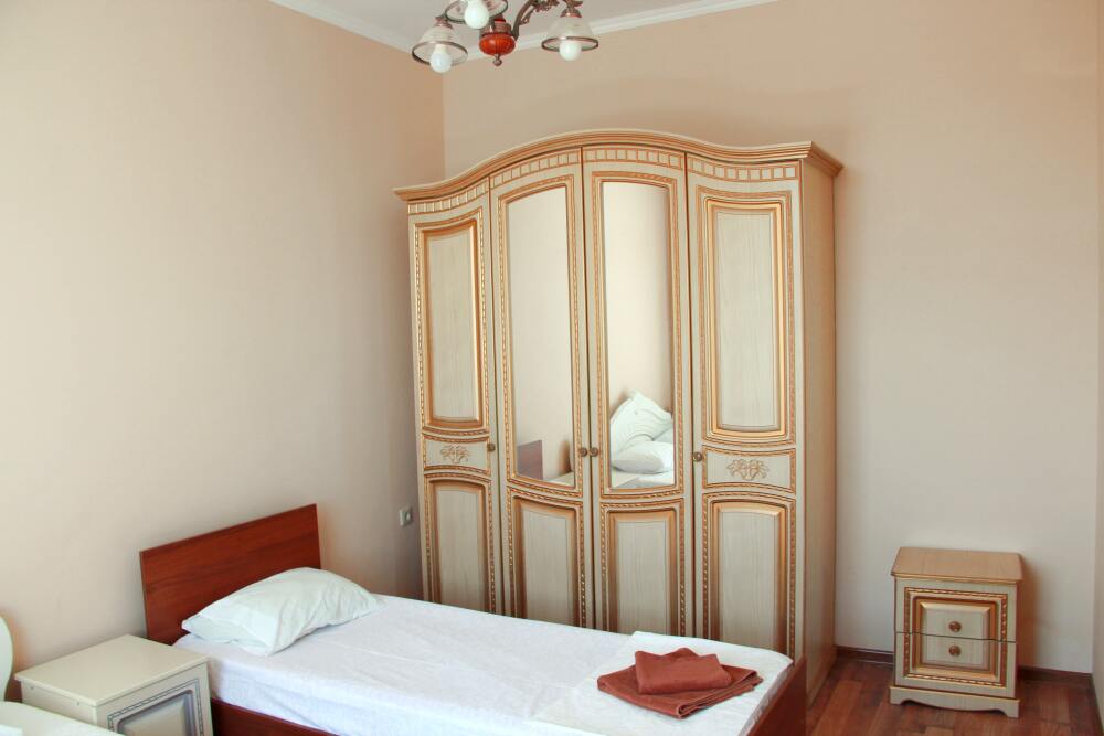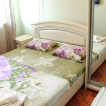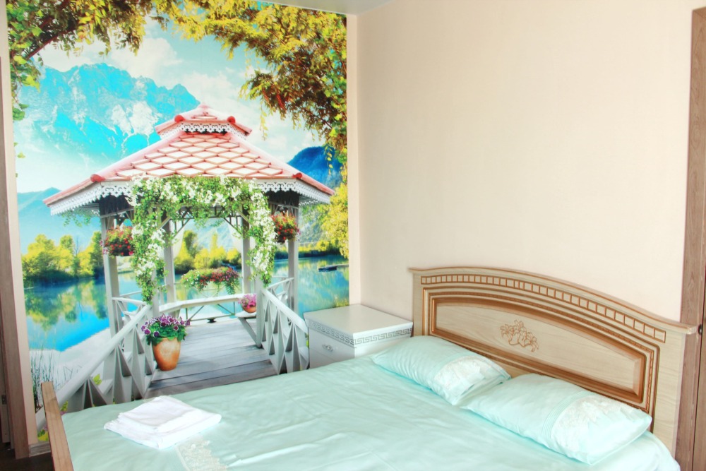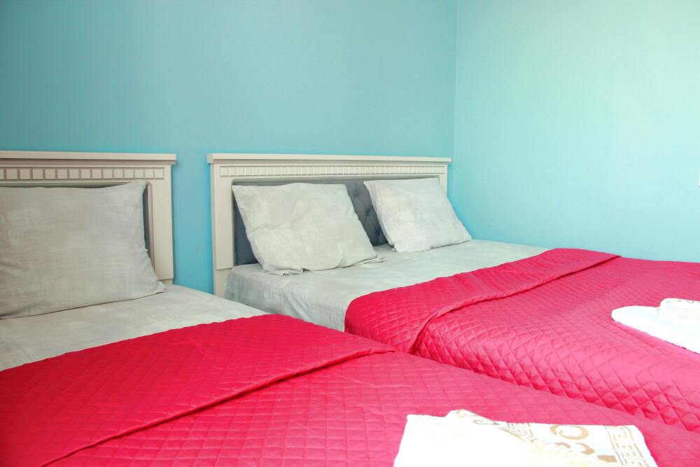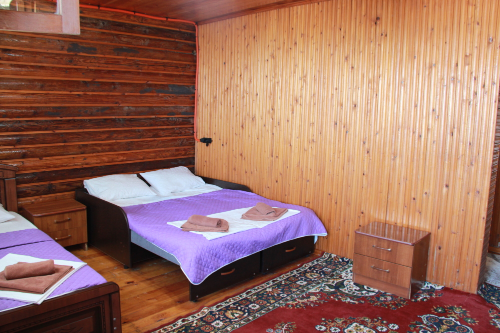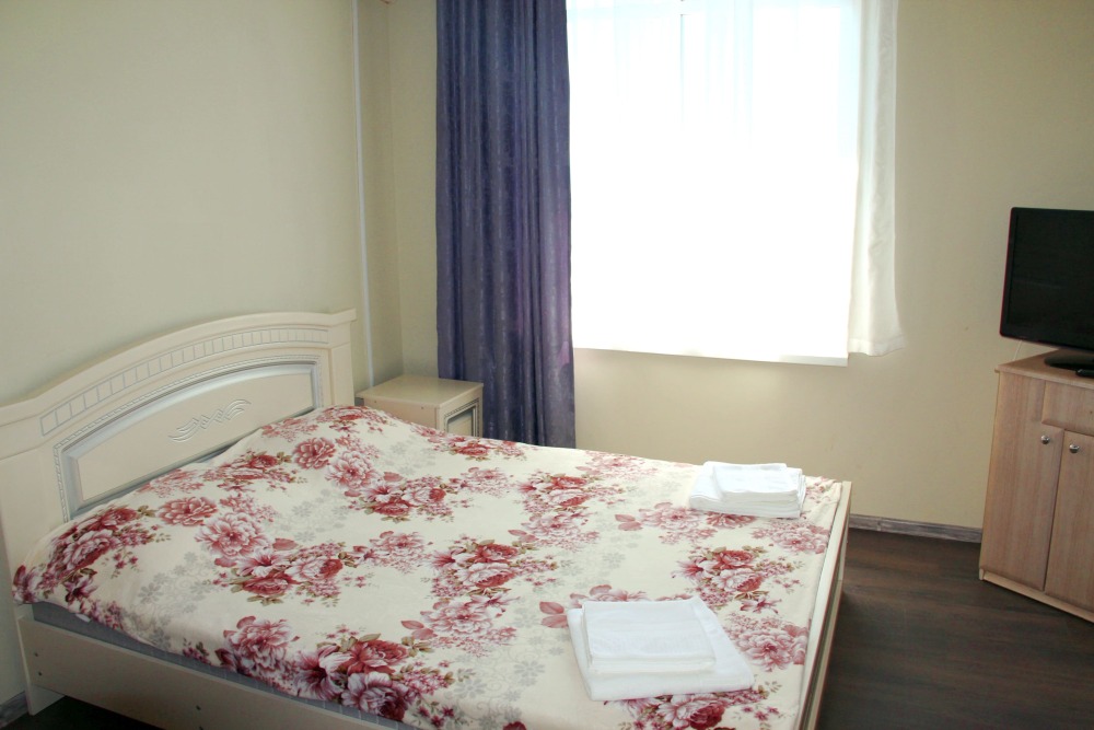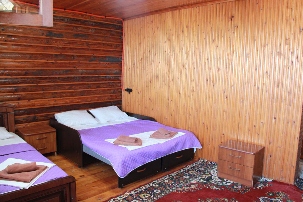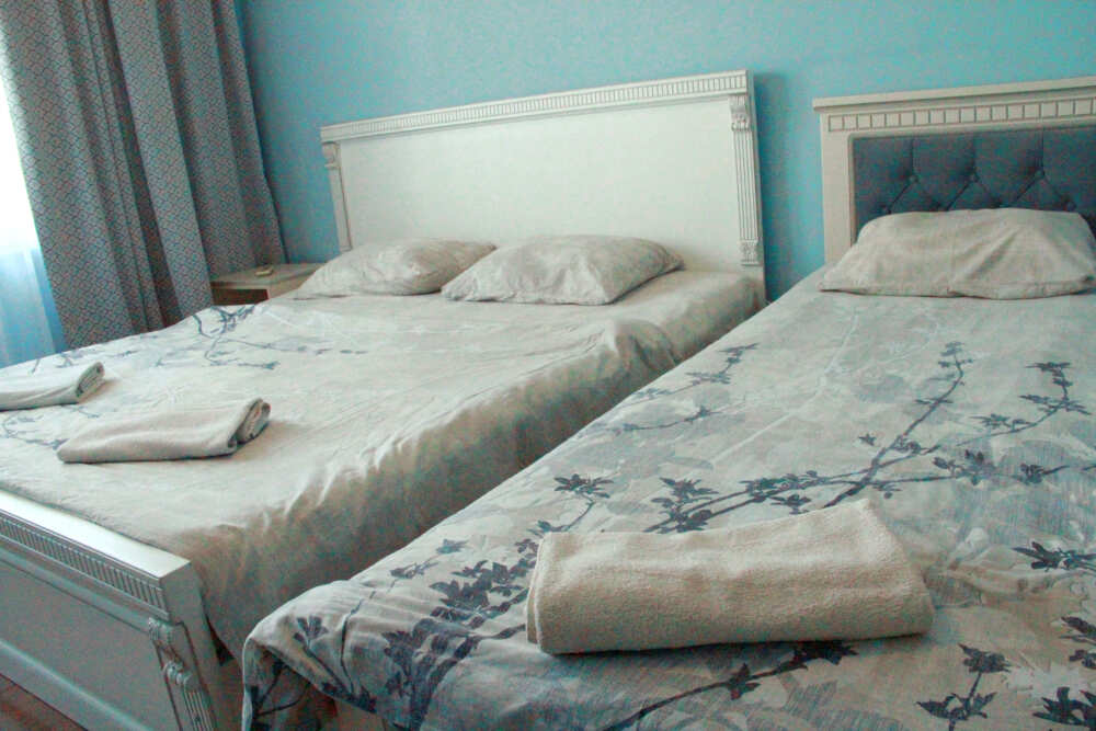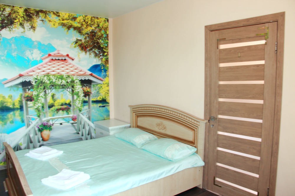 4-х местный семейный номер категории «Стандарт» - однокомнатный уютный номер, 1 этаж, 2 корпус, отдельный вход, в номере – 4 раздельные кровати, комод, 2 шкафа для одежды, журнальный стол, телевизор, кондиционер. Санузел (душ, туалет, раковина) в номере. Окна номера во двор. Рядом с номером стиральная машина и летняя кухня.
