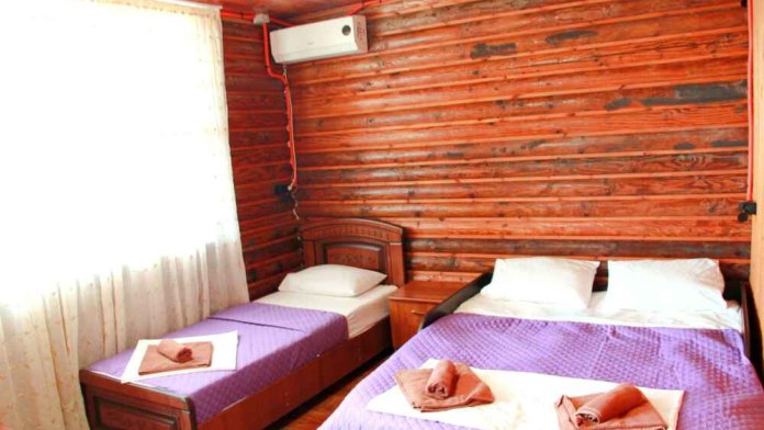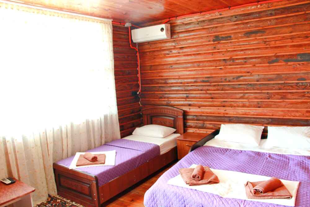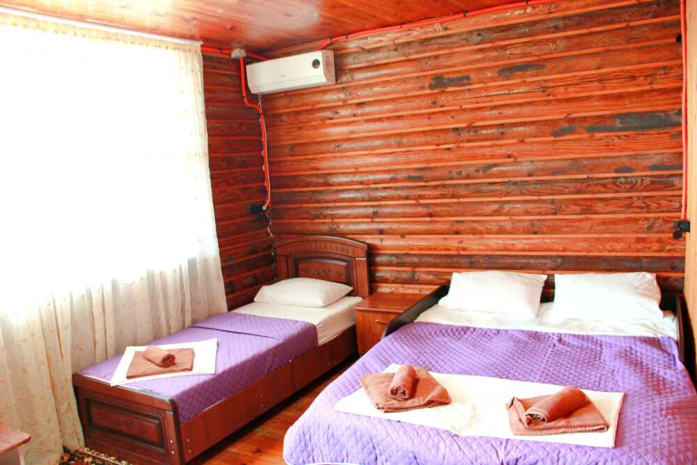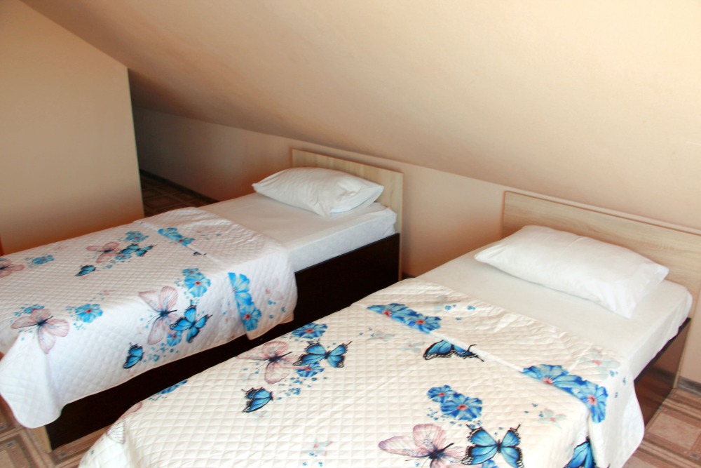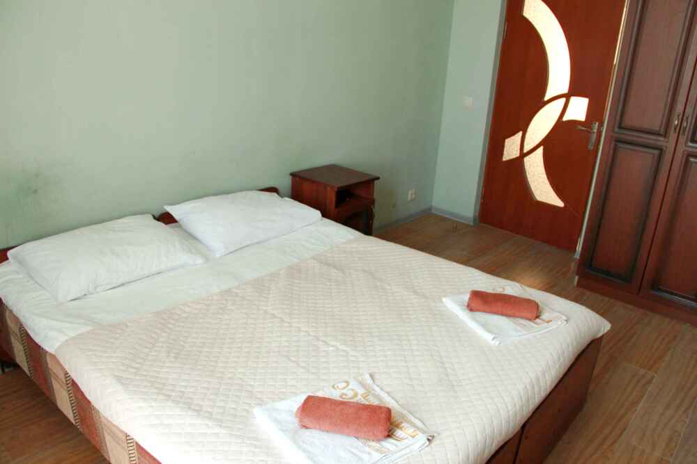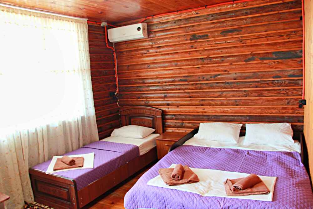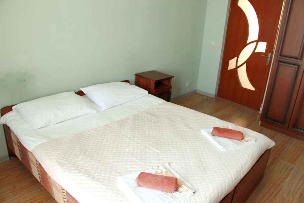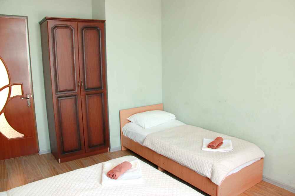 2-х местный номер категории «Эконом» - номер расположен в отдельном летнем домике – 2 раздельные кровати, прикроватные тумбочки, кондиционер, телевизор, шкаф. Санузел (душ, туалет, раковина) в номере.