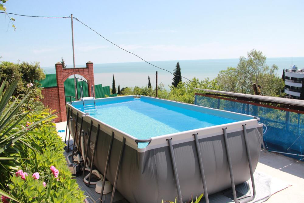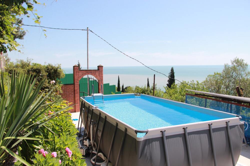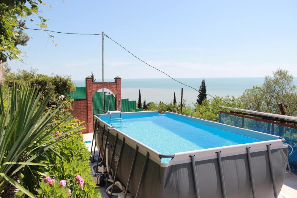 Терраса озеленена тропическими насаждениями. На территории предусмотрено место для мангала. Дети могут плескаться в детском бассейне.