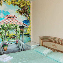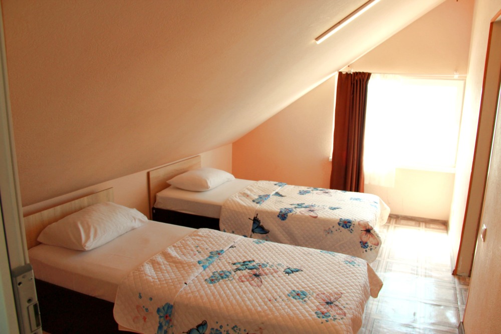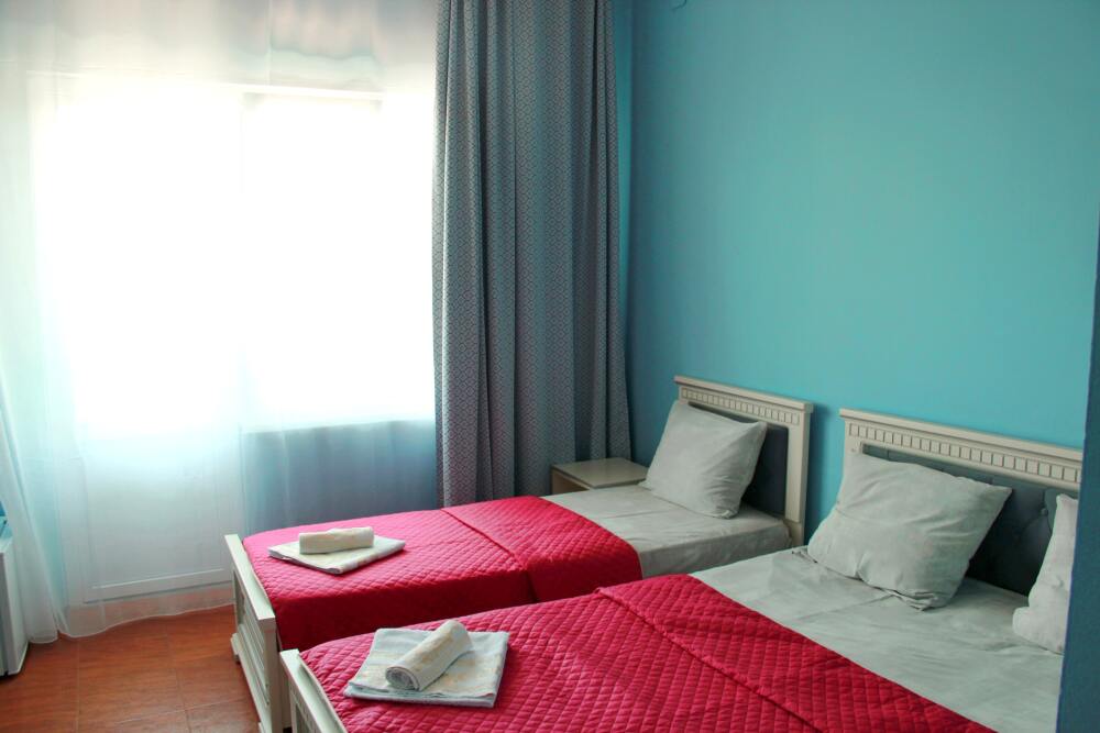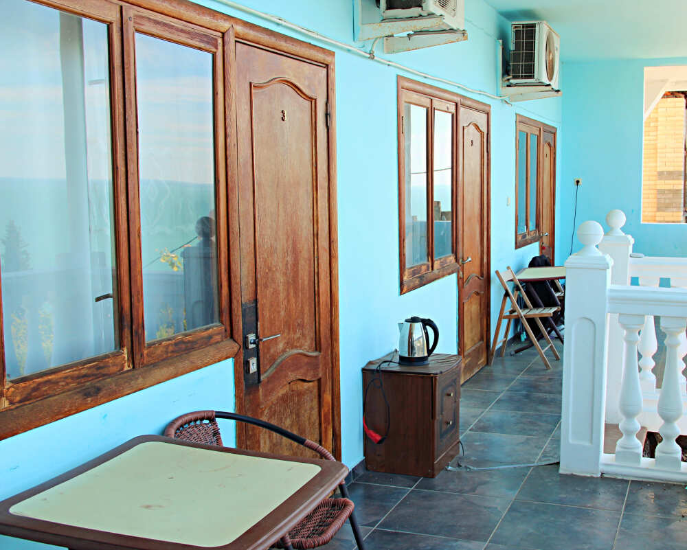 К услугам отдыхающих 2-, 3- и 4-местные номера с видом на море и поселок. Каждый номер оснащен всем необходимым для комфортного пребывания.