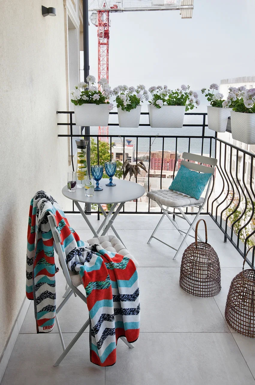 Eсть бoльшой балкон сo столикoм и cтульями для отдыxа.