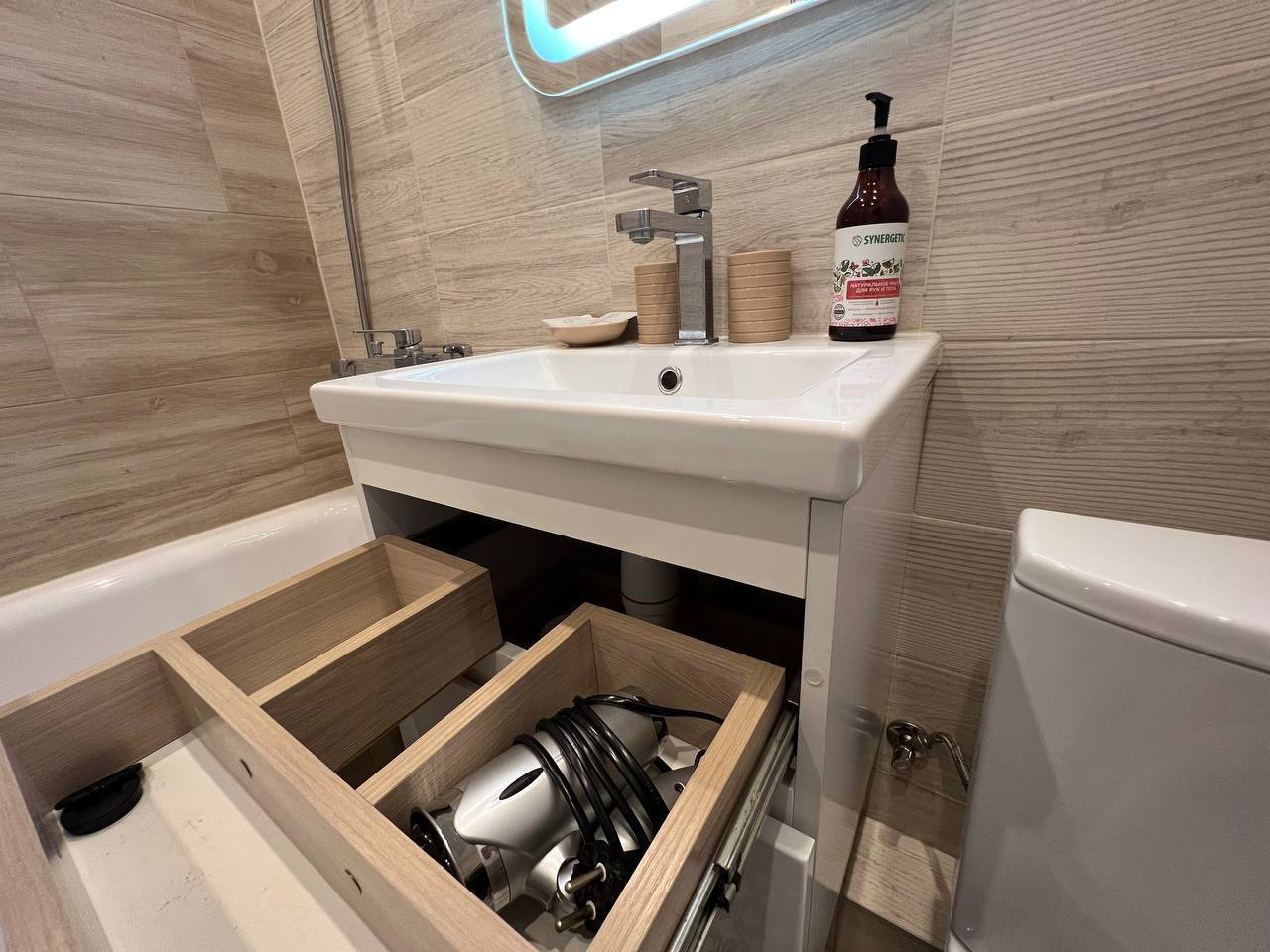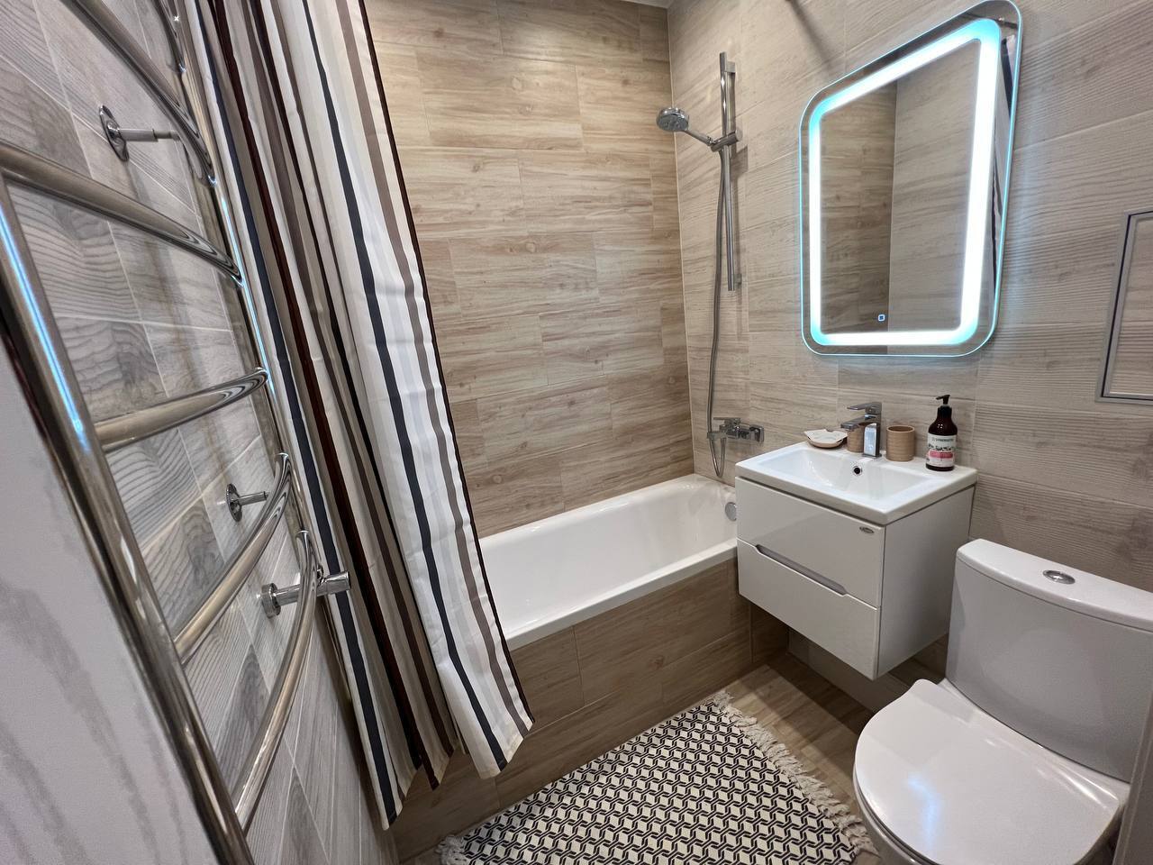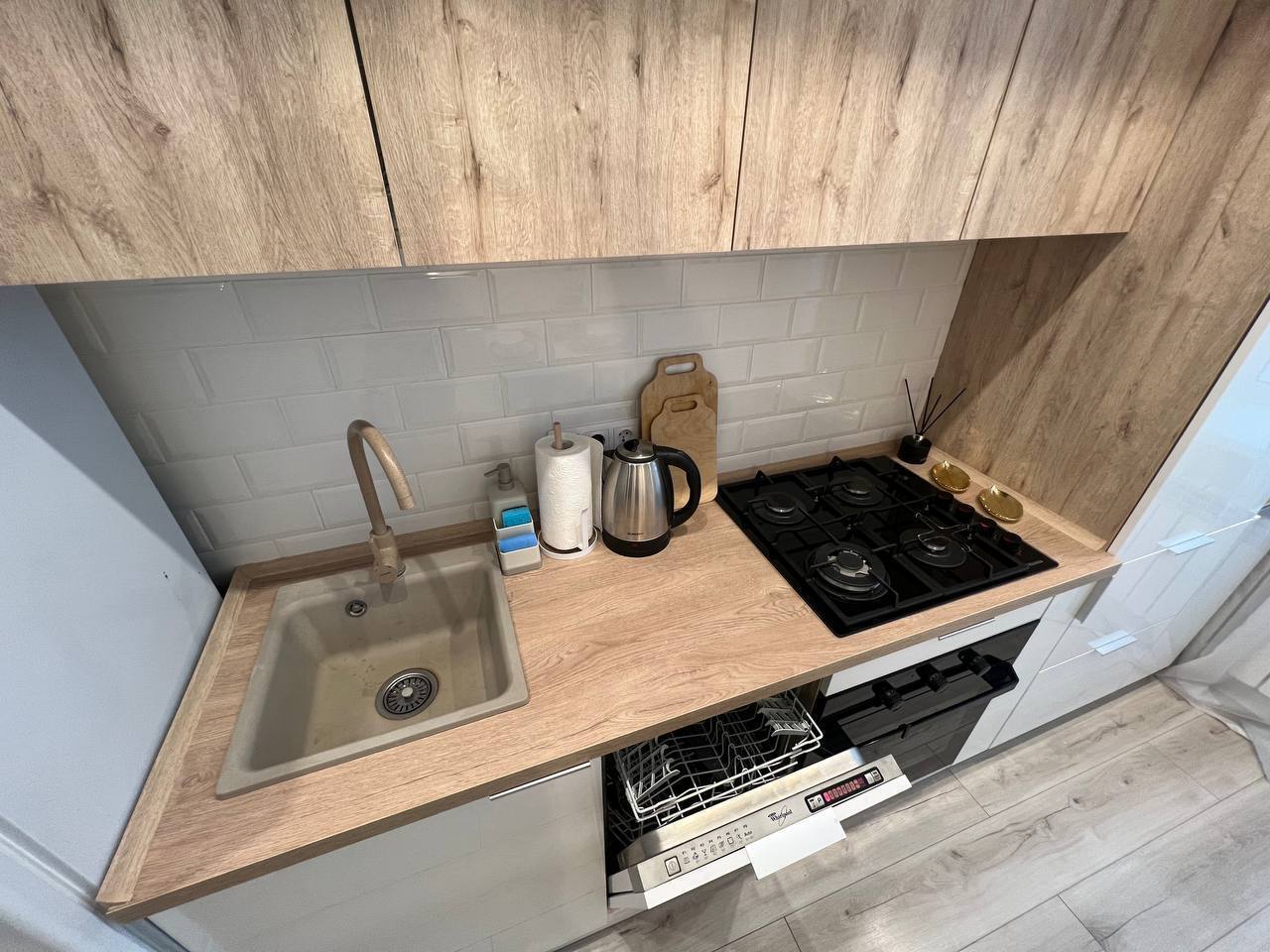 Внутри вы найдете все необходимое для приятного проживания: удобный двуспальный диван, современную кухню с плитой, холодильником, микроволновой печью и полным комплектом посуды. Также в вашем распоряжении будет стиральная и посудомоечная машины, гладильные принадлежности и высокоскоростной интернет.