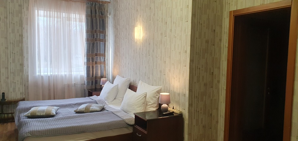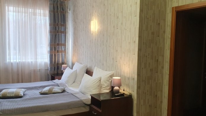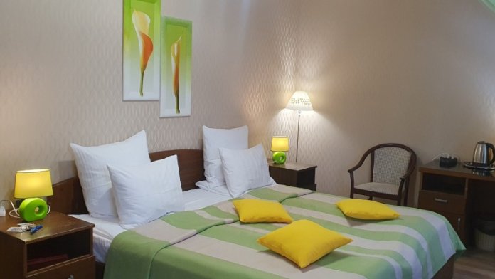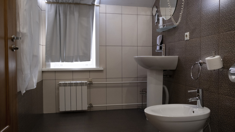 В каждом номере: халат, тапочки, бритвенный набор, гель для душа, зубной набор, мыло, шампунь, шапочка для душа, полотенца.