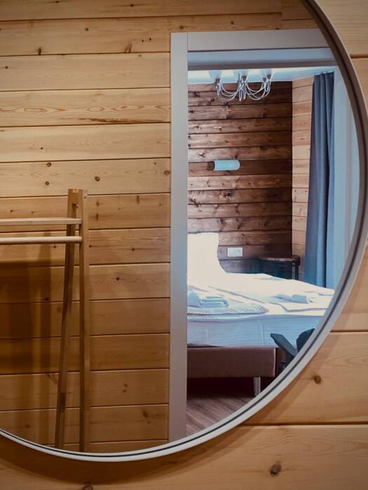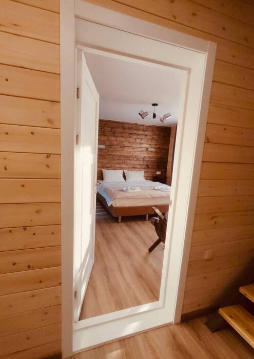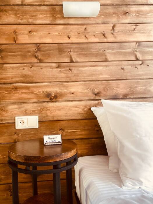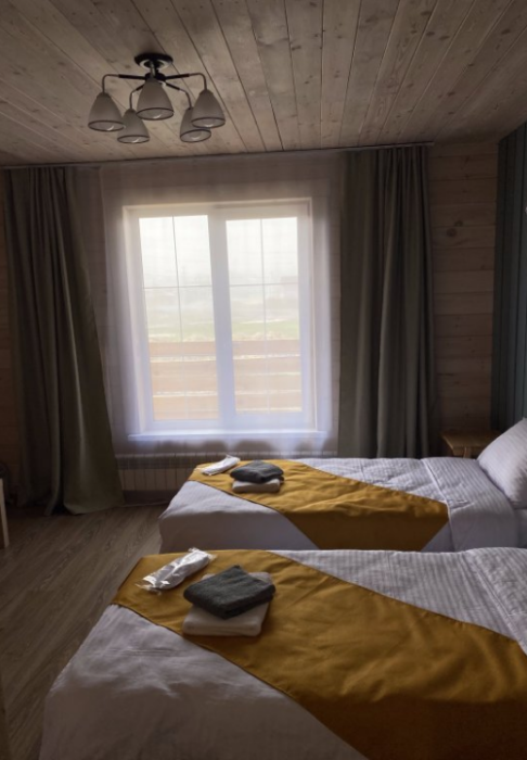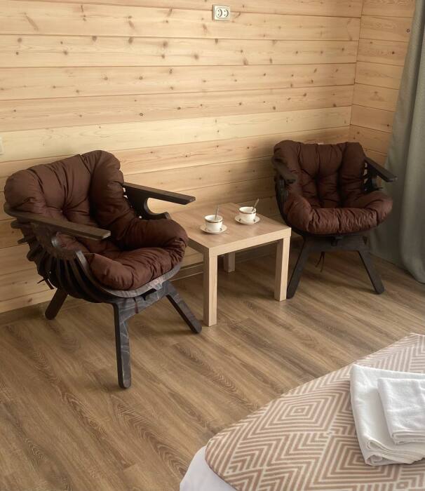 Для проживания в гостевом доме имеются комнаты, оснащённые всем необходимым для комфортного проживания: удобные спальные места (кровать-трансформер и диван), фен, одноразовые тапочки, полотенца, средства индивидуальной гигиены, оборудованная ванная комната. Все домики оборудованы просторной верандой.
