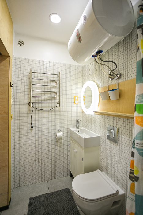 В студии двухспальная кровать и двухъярусная кровати. Оборудована полноценная зона кухни: встроенный холодильник, микроволновка, электрочайник, варочная поверхность, посудомоечная машина, посуда для принятия и приготовления пищи. В санузле бойлер и стиральная машина. Горячая и холодная вода круглосуточно. В летнее время от жары Вас спасет кондиционер, зимой и в межсезонье для комфорта используется теплый пол. Можно ходить босиком. Для комфортного отдыха в квартире имеется утюг, гладильная доска, фен, телевизор,Wi-FI, пылесос. Витражные окна в пол, французский балкон открывают шикарный вид на море и скалу Дива. Можно устроиться перед французским балконом воспользоваться раскладным столиком и за чашечкой кофе или бокалом вина наслаждаться видами на Симеизскую бухту.