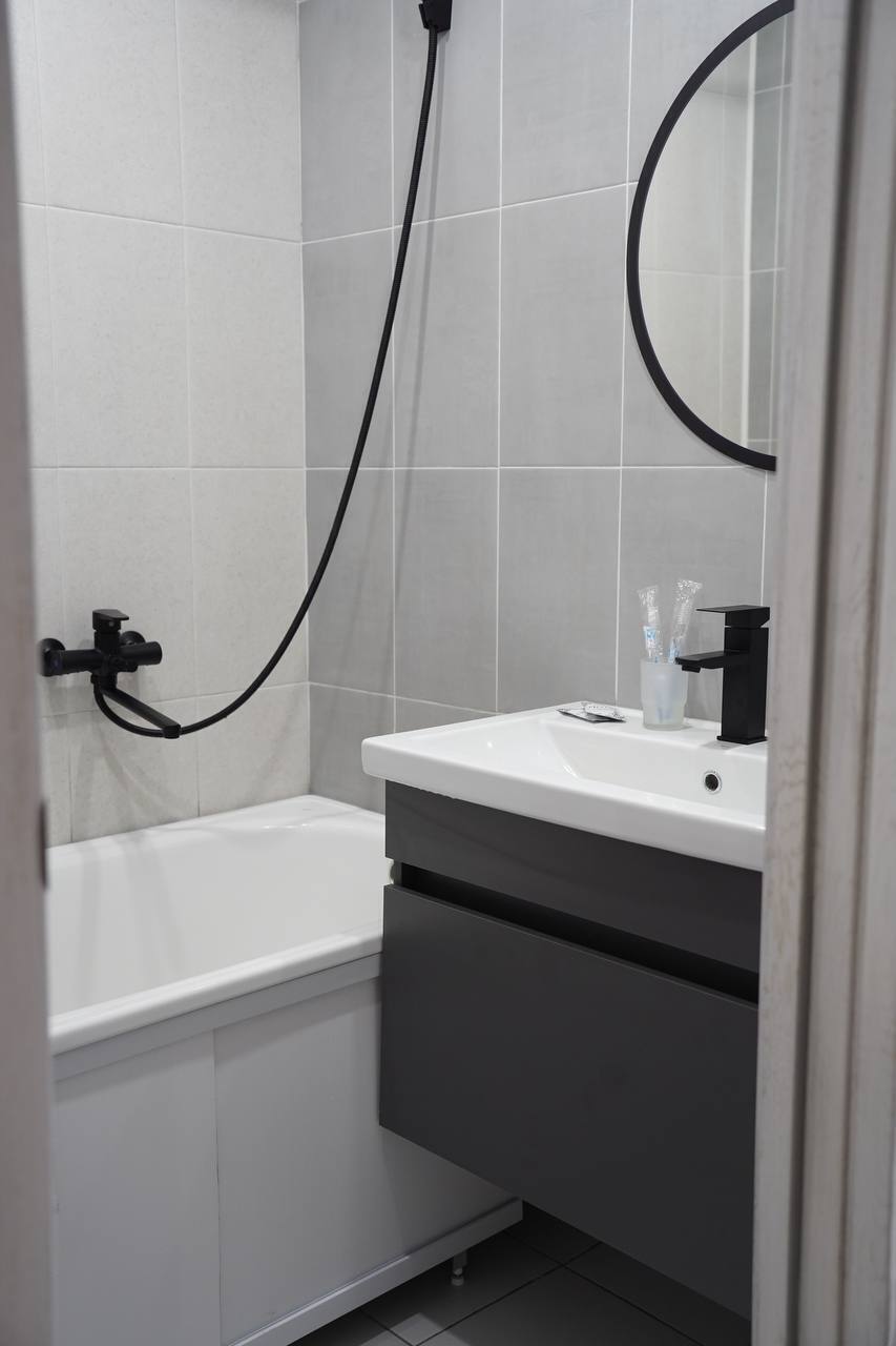 - В ванной есть фен, гигиенический набор (зубной набор, шампунь, бальзам, гель для душа, мыло, ватные диски и палочки);