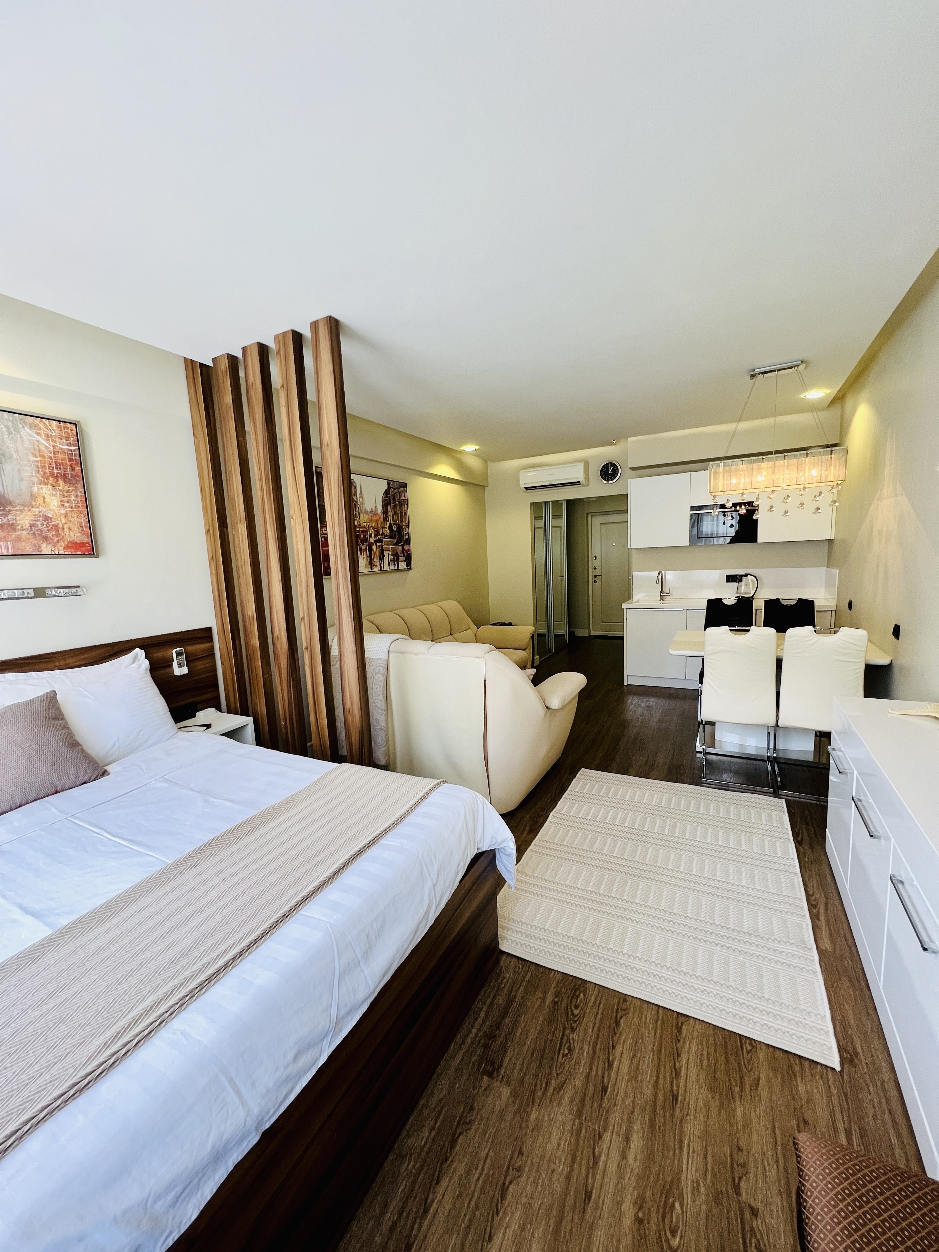 Уютный апартамент, полностью оборудован и укомплектован по всем современным стандартам, подходящий для деловых поездок и семейного отдыха.