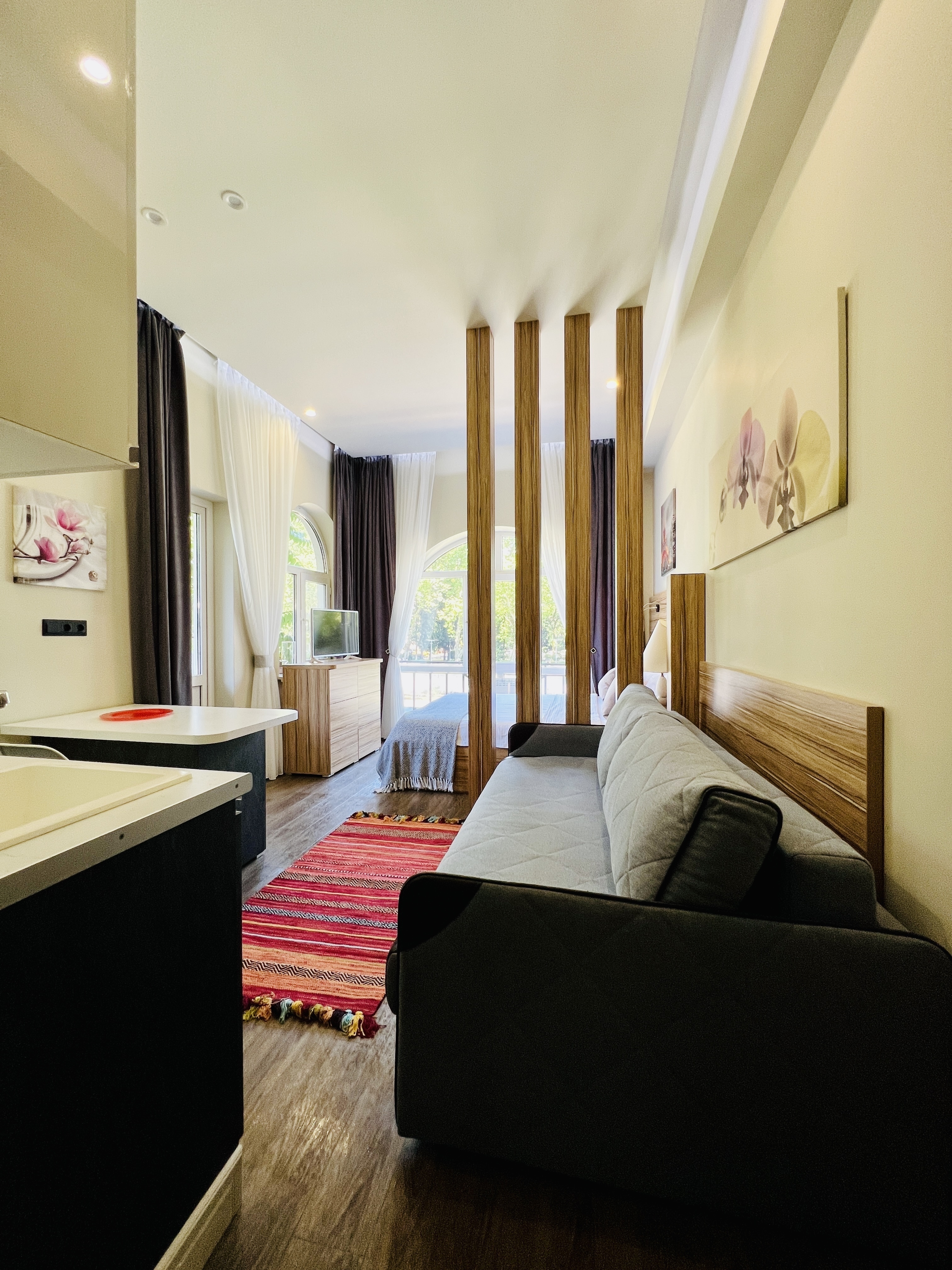 Уютный апартамент, полностью оборудован и укомплектован по всем современным стандартам, подходящий для деловых поездок и семейного отдыха.
