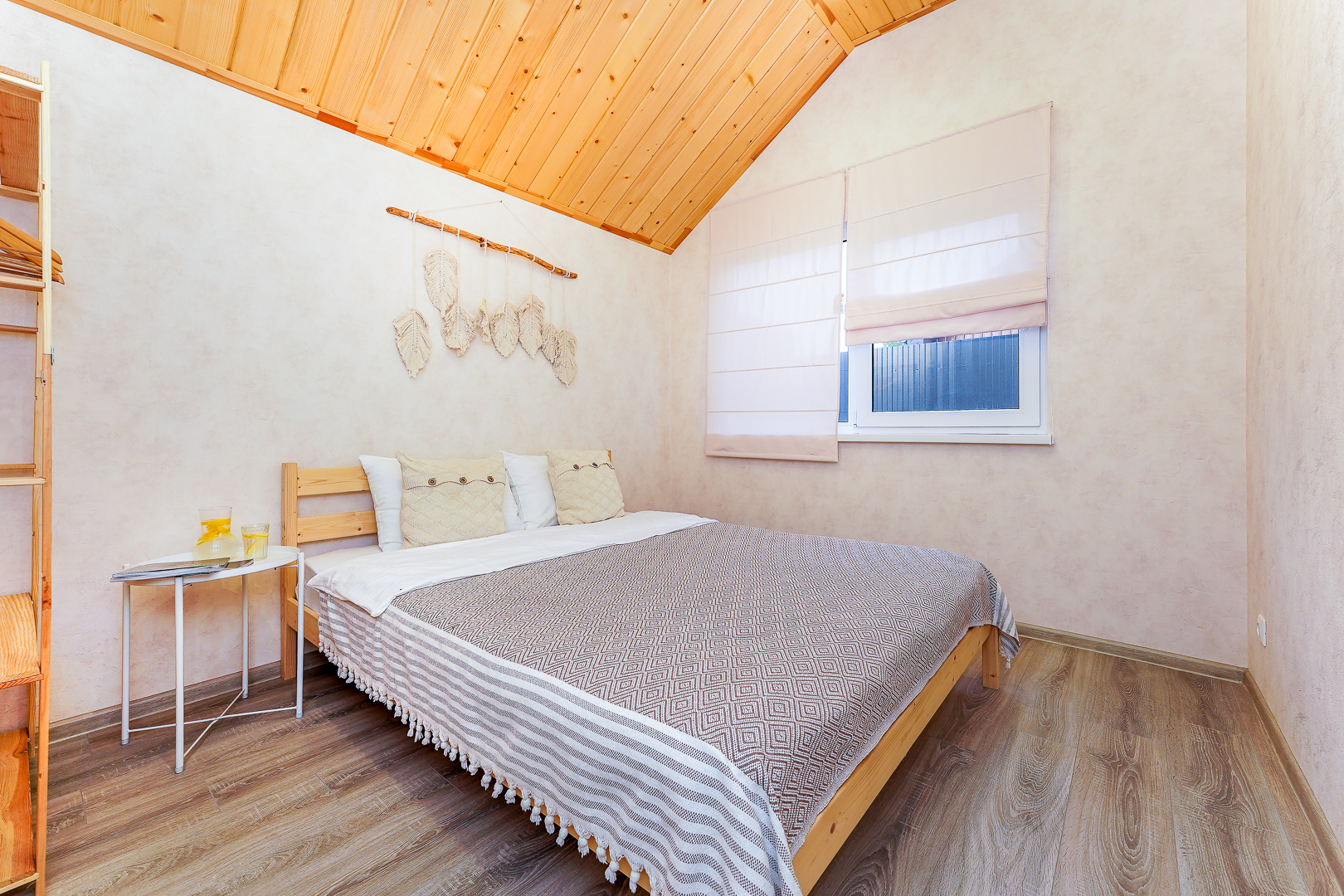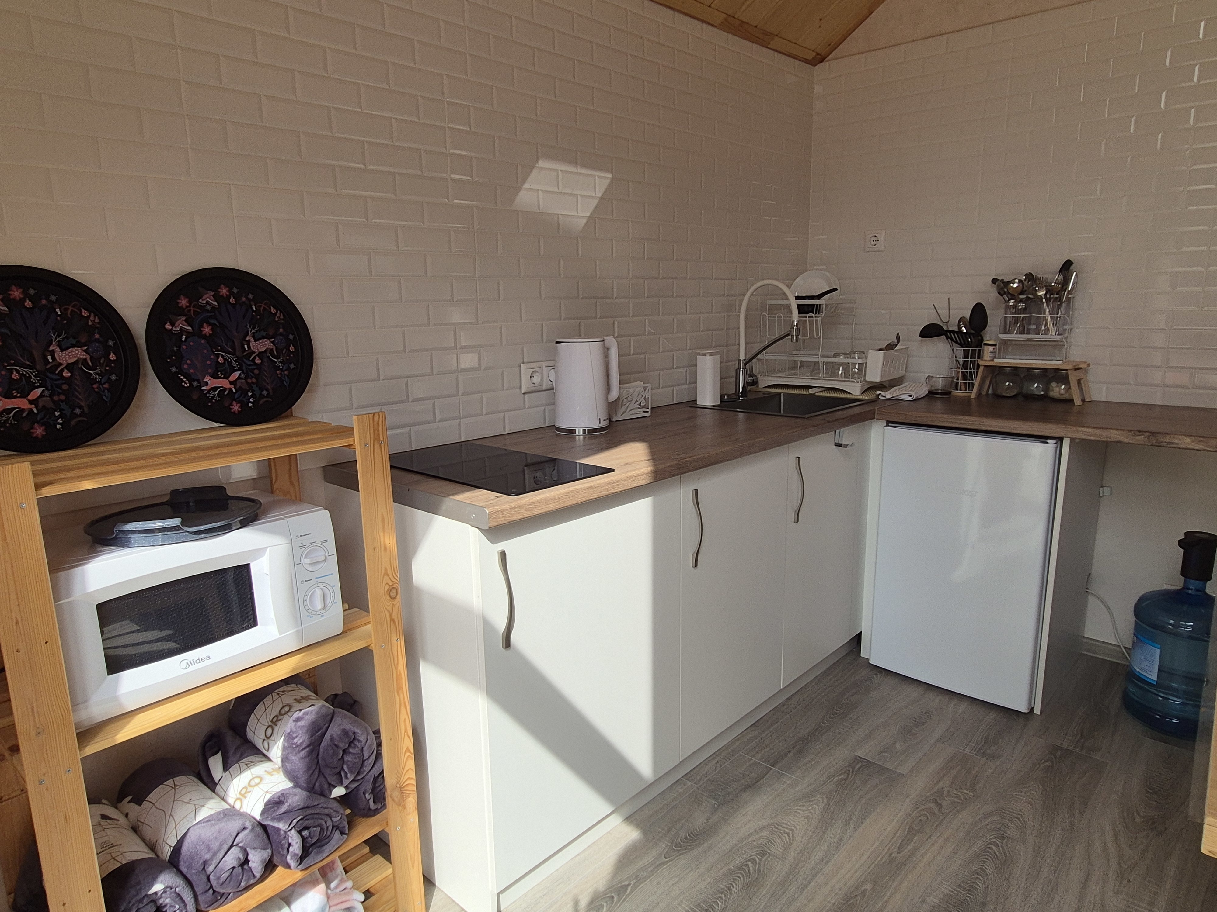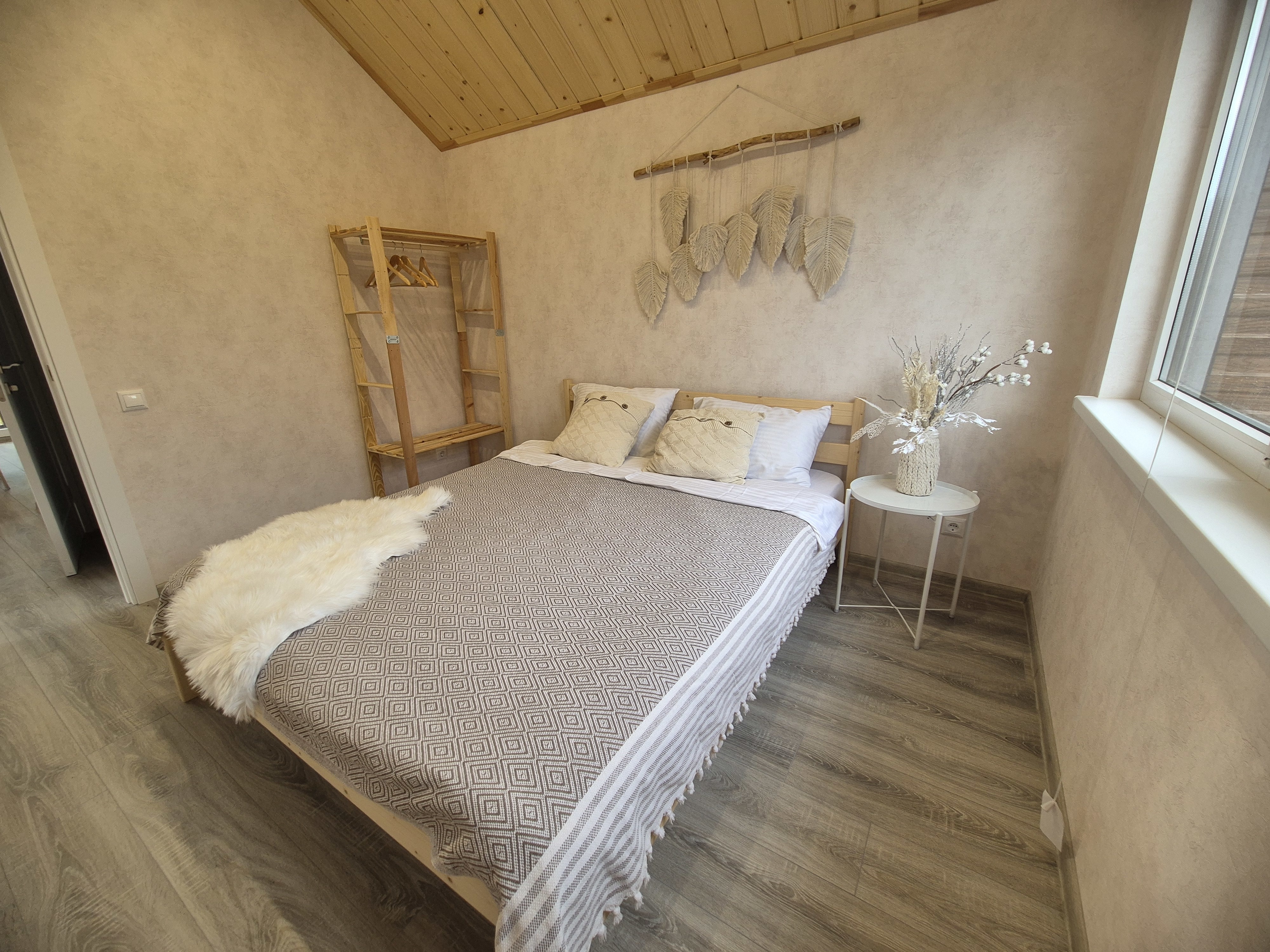 В доме есть все для отдыха на природе. Две спальни. Одна с двуспальной кроватью 160х200, другая с двумя раздельными кроватями. В кухне-гостиной двуспальный раскладывающийся диван. Санузел, терраса с креслами-шезлонгами. Дом оснащён необходимой техникой и посудой для комфортного отдыха. Чистое белье и полотенца.