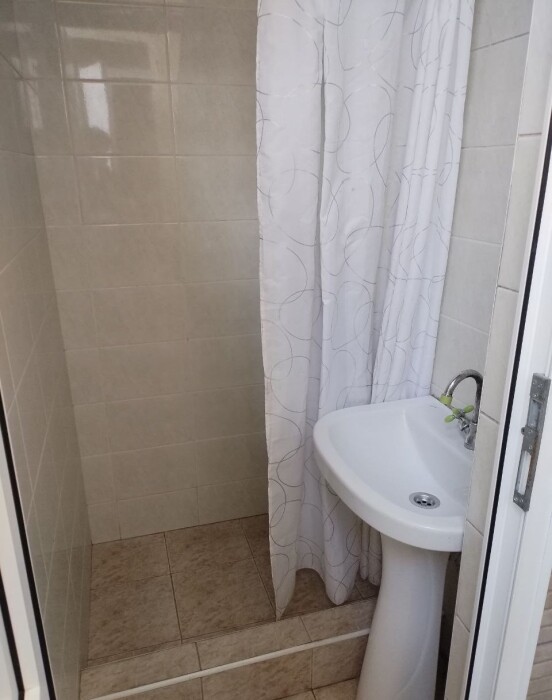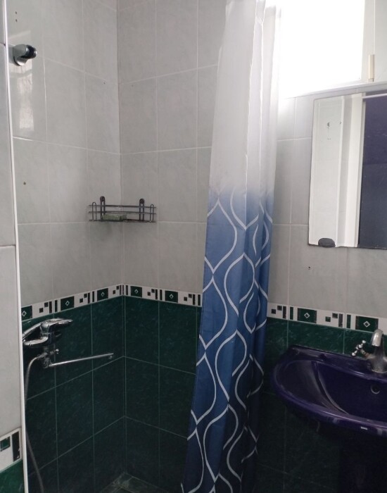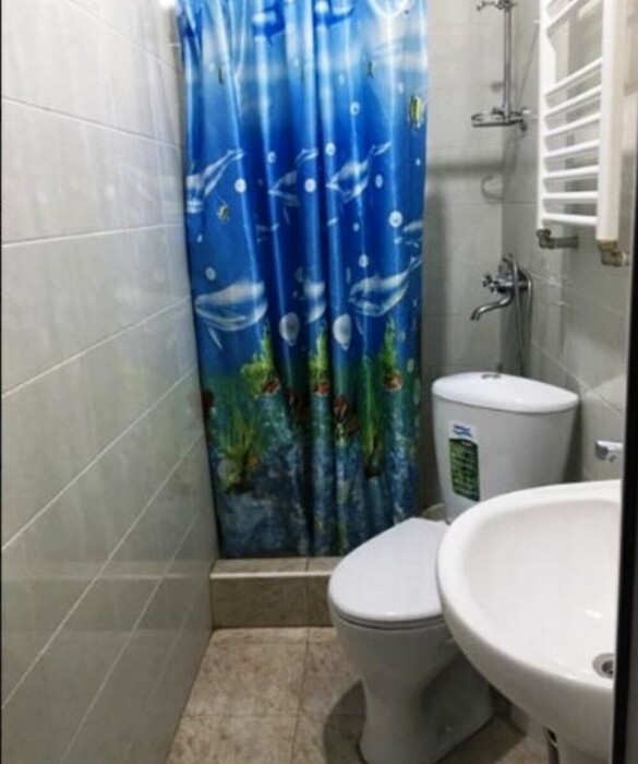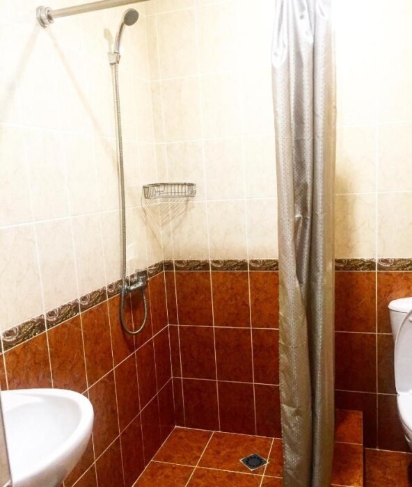 Общая ванная комната: душ, раковина, туалет.
