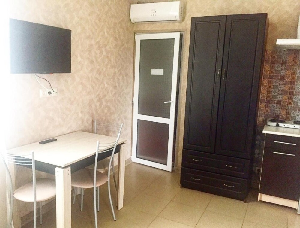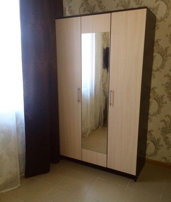 Имеется телевизор, кондиционер, шкаф, вешалка, зеркало, журнальный столик, стулья.