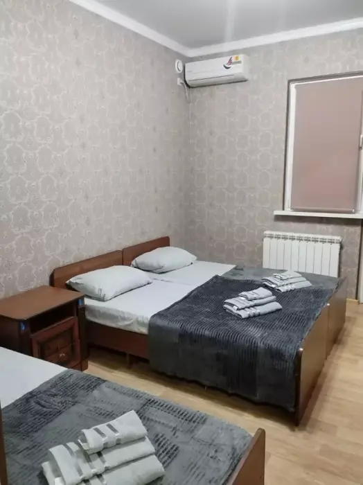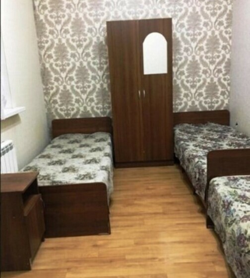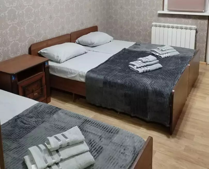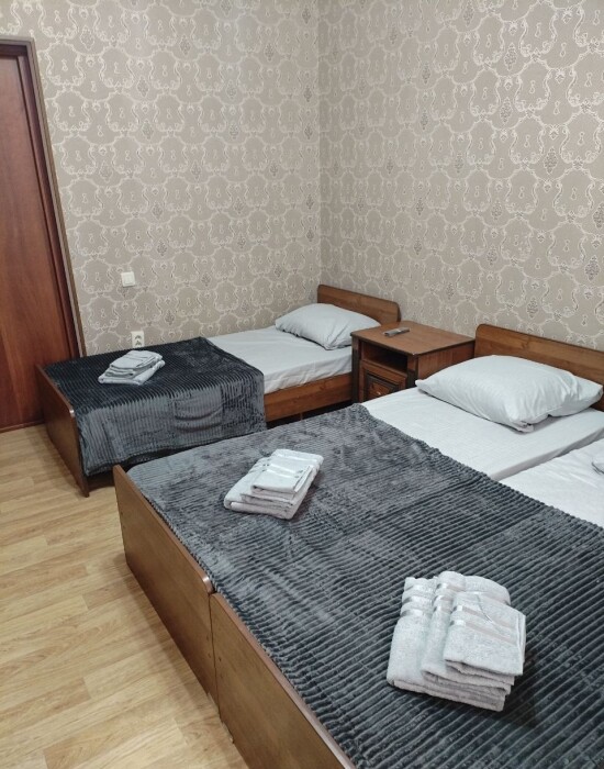 В номере: 1 двуспальная и 1 односпальная кровати или 3 односпальные кровати.