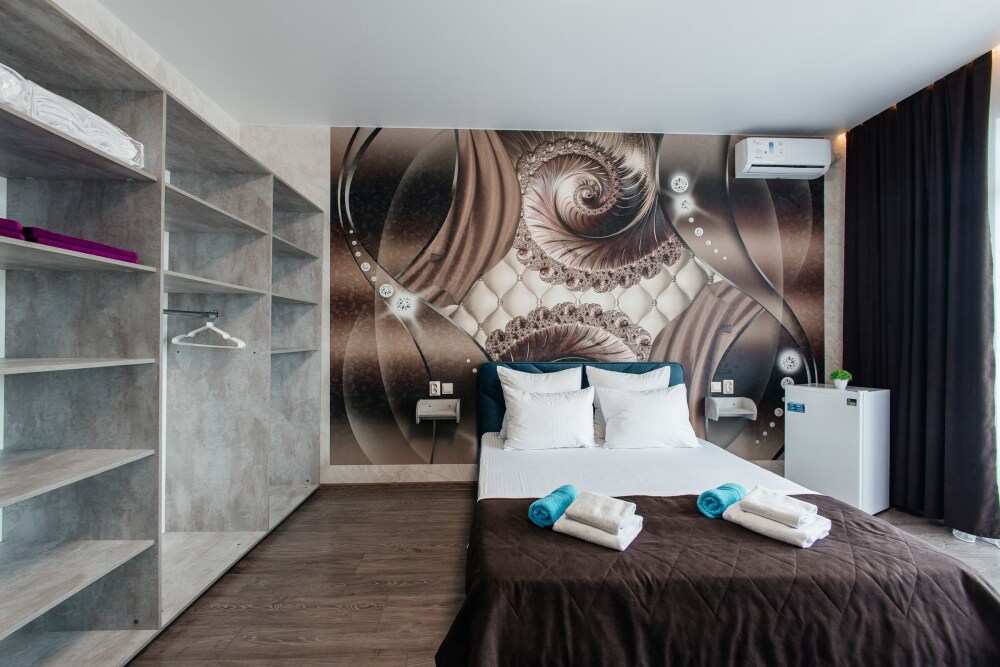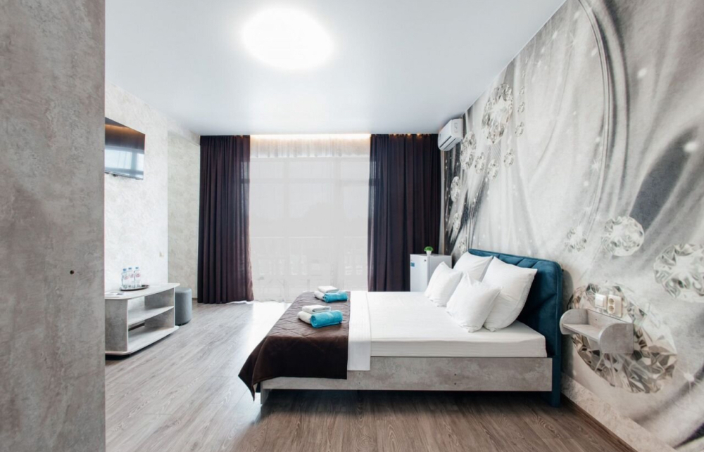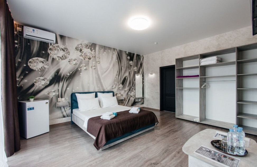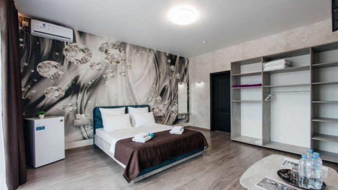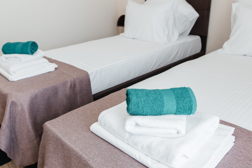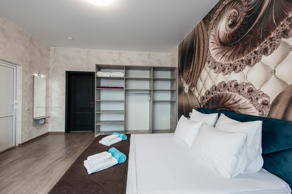 В номере двухспальная кровать, возможно доставить доп. место для размещения 3-го человека. Так же возможно разделить кровати.