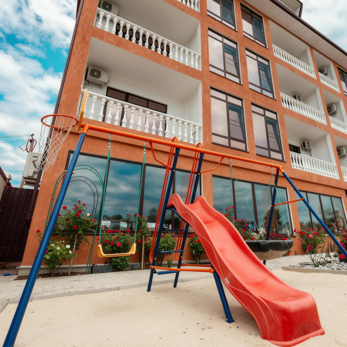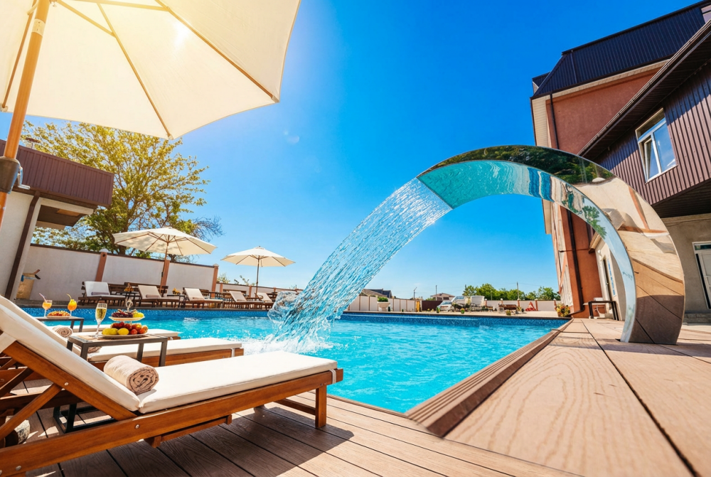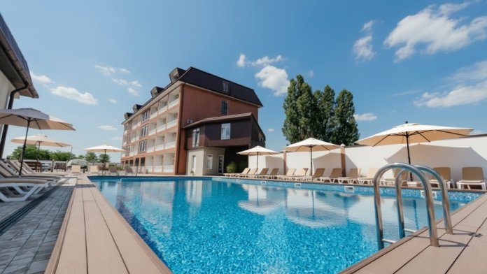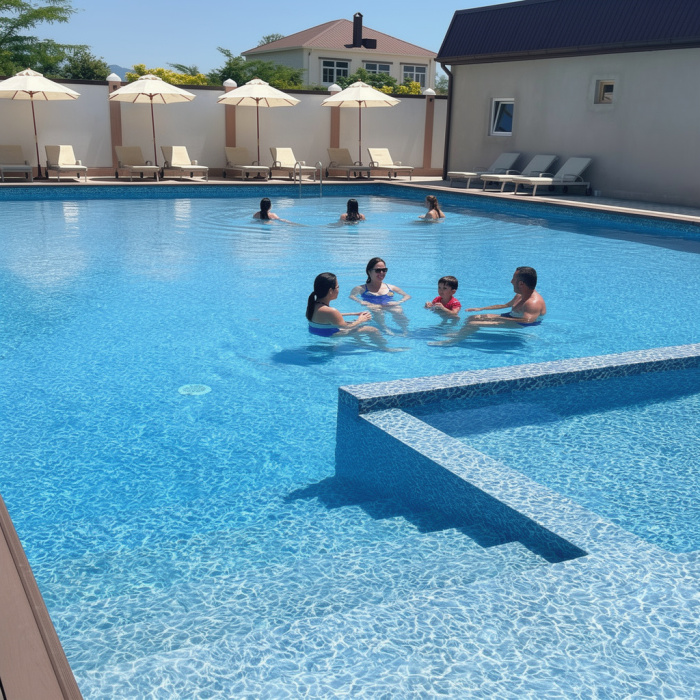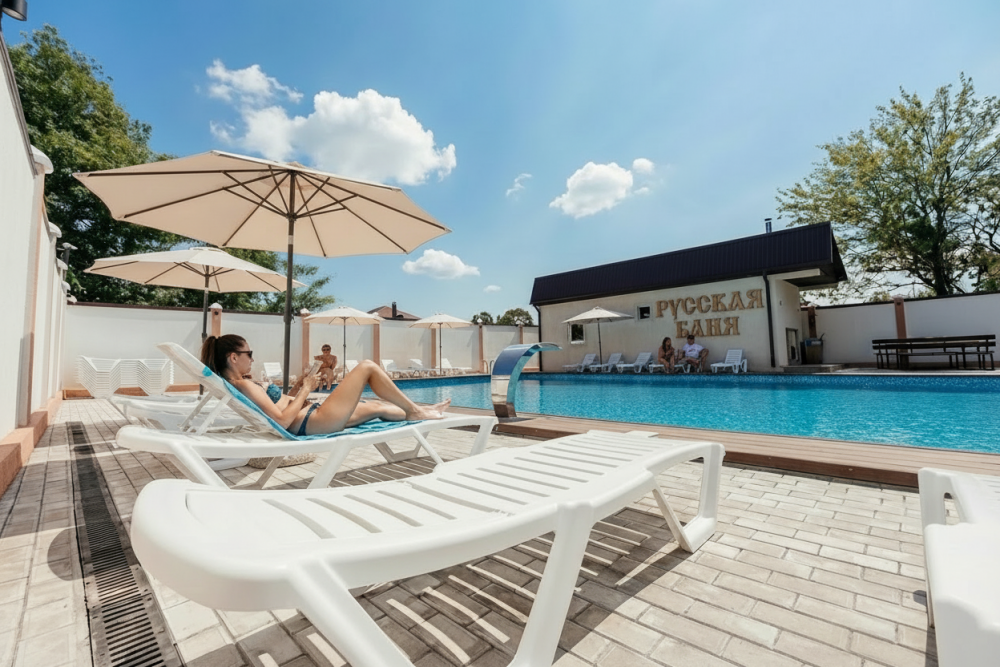 На территории гостиницы расположен уютный бассейн, где можно расслабиться под солнечными лучами и насладиться отдыхом.