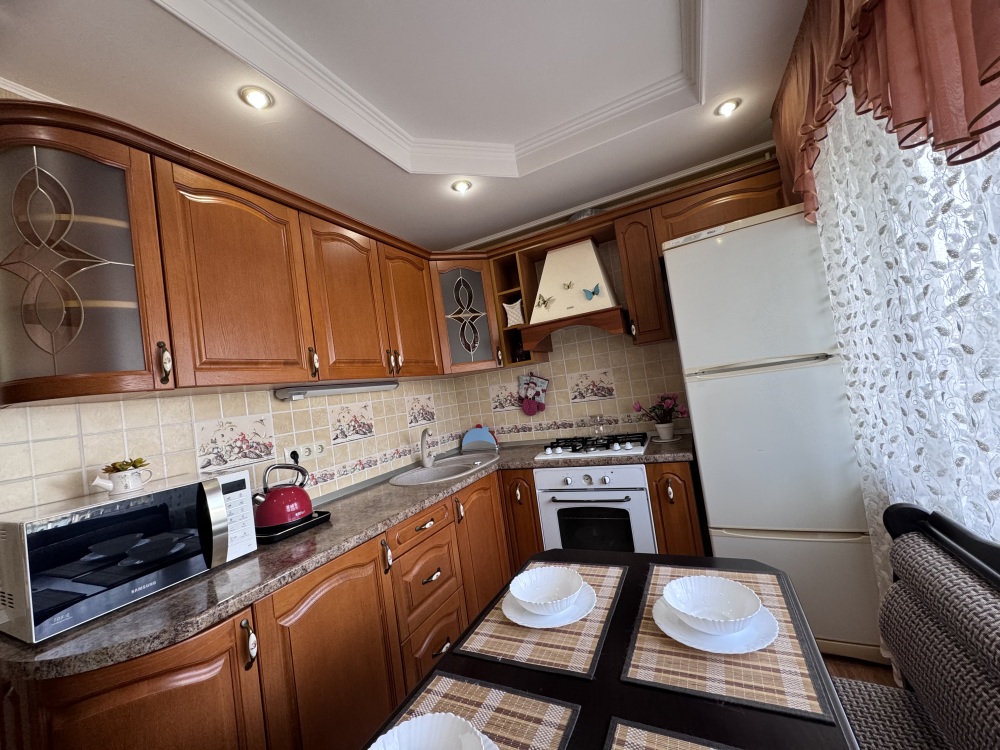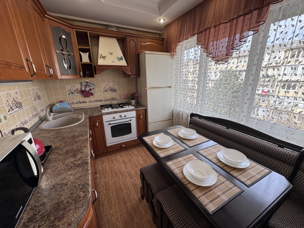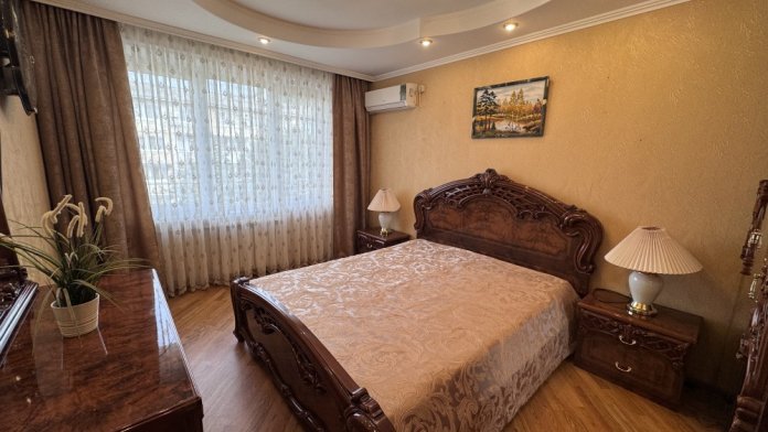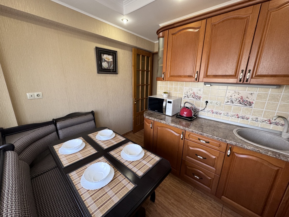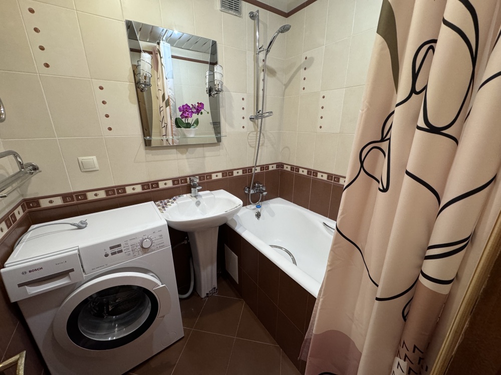 Квартира полностью меблирована, с хорошим ремонтом. Есть всё необходимое для комфортного проживания: микроволновая печь, плита, чайник, духовка, посуда, холодильник, утюг, гладильная доска, телевизор, 2 кондиционера, интернет.