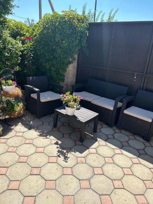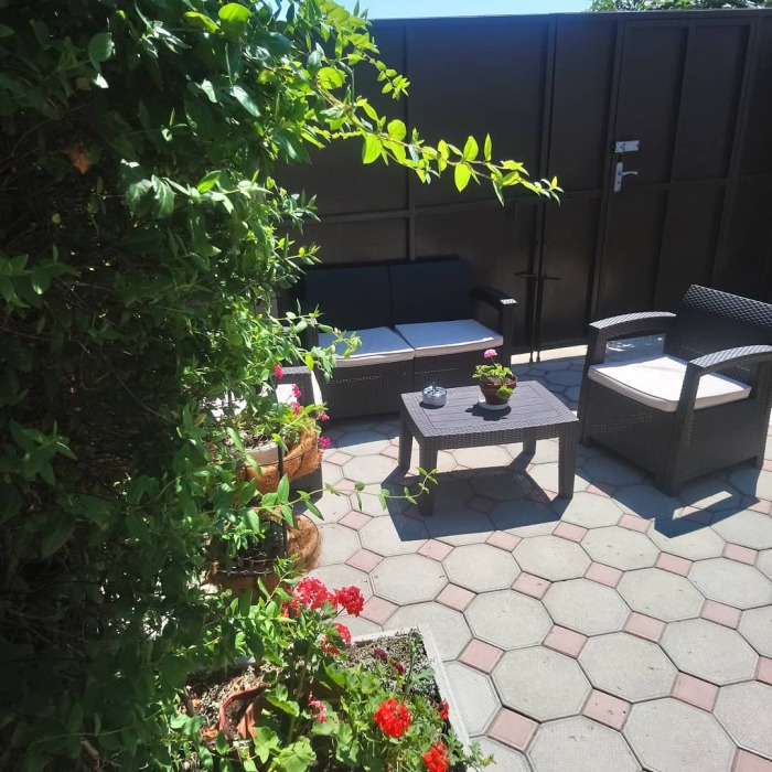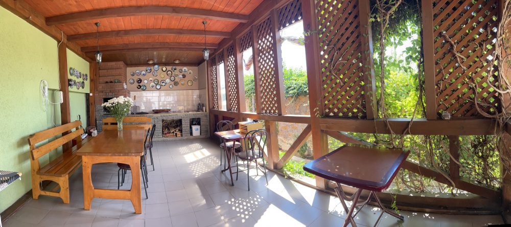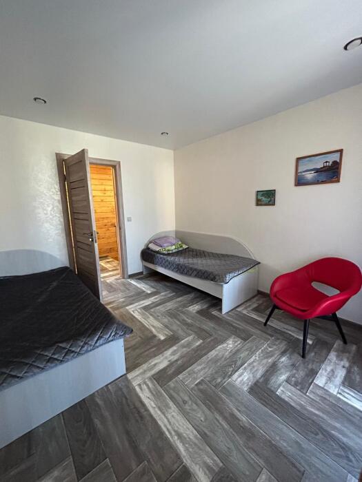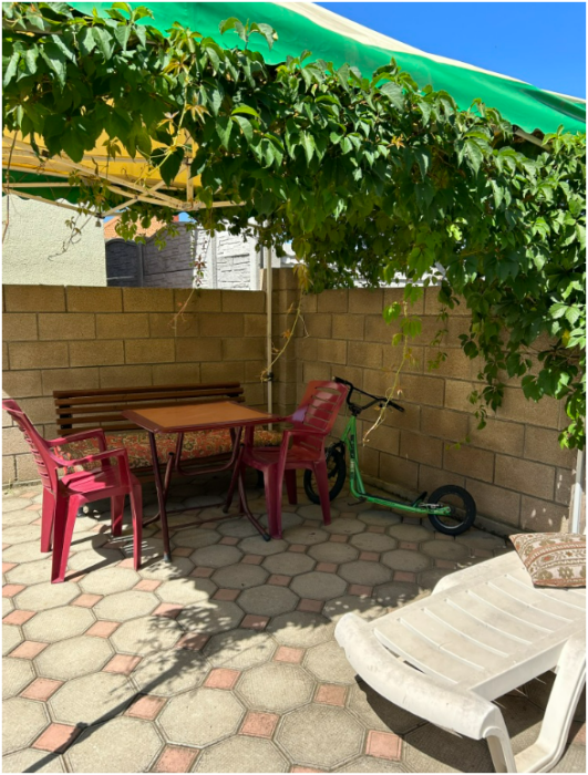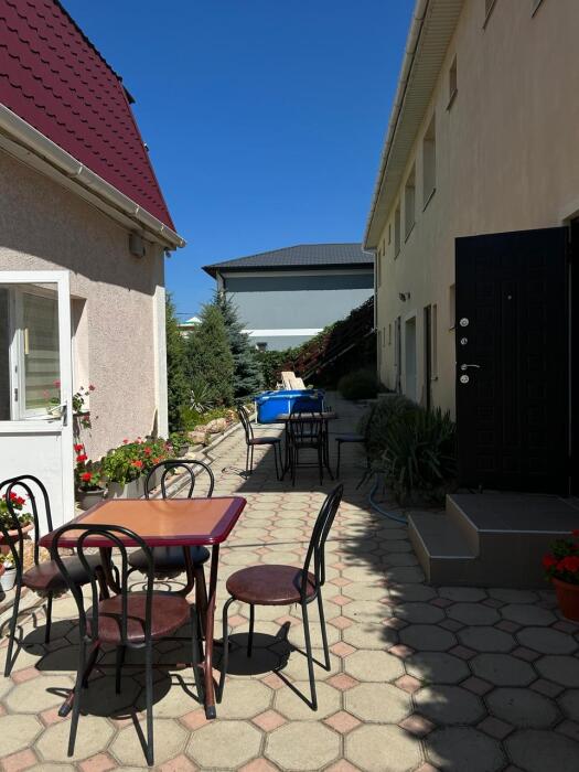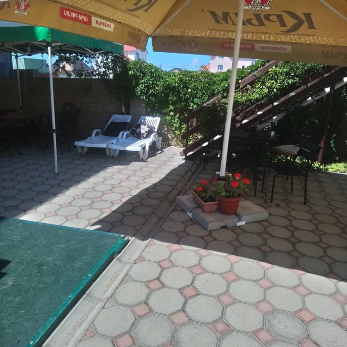 До моря 8 минут неспешным шагом. Пляж песчано-галечный. Хорошо развита инфраструктура. Предоставляем трансфер. Так же большой ухоженный двор с беседками, детская мини-площадка, альтанка с мангалом и барбекю, стоянка для машин, кухня-столовая, газ, холодильники, телевизор.