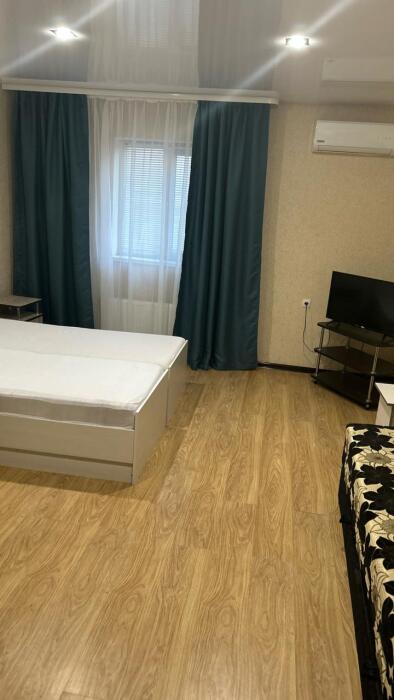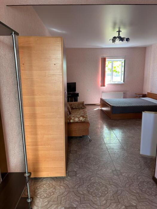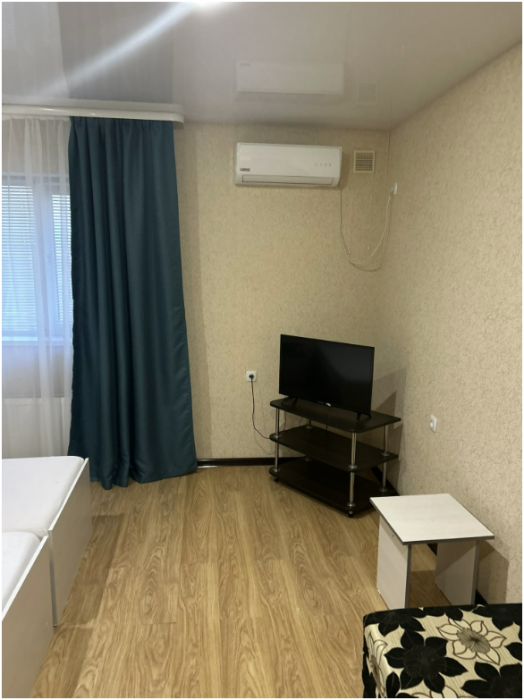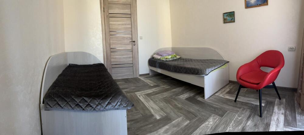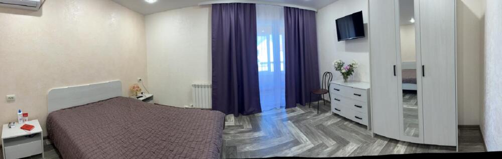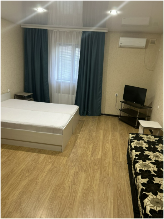 В номере: 2 просторные комнаты, 2 дивана раскладных, одна двухспальная кровать, стол, стулья, телевизор, холодильник, микроволновая печь, кухонный уголок, шкаф с вешалкой, кондиционер, wi-fi.