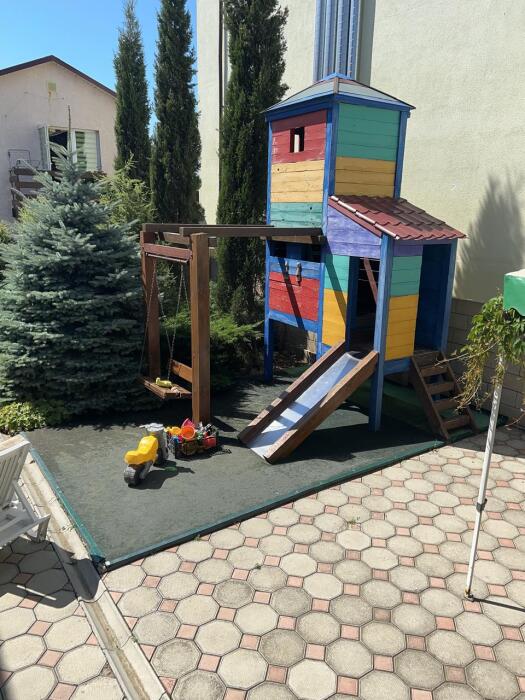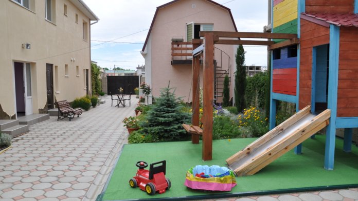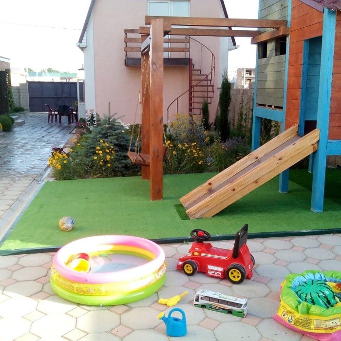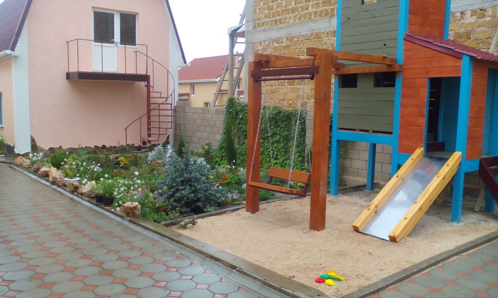 Общая кухня (напротив) на 4 номера. 25кв.м 4 спальных места мангал детский бассейн,детская площадка