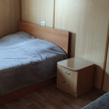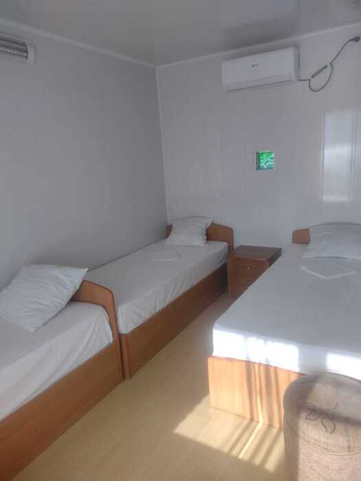 В номере: 3 кровати, тумбочка, столик журнальный, полки и ящики для белья, телевизор, кондиционер, душ, туалет в номере, горячая вода (электробойлер).