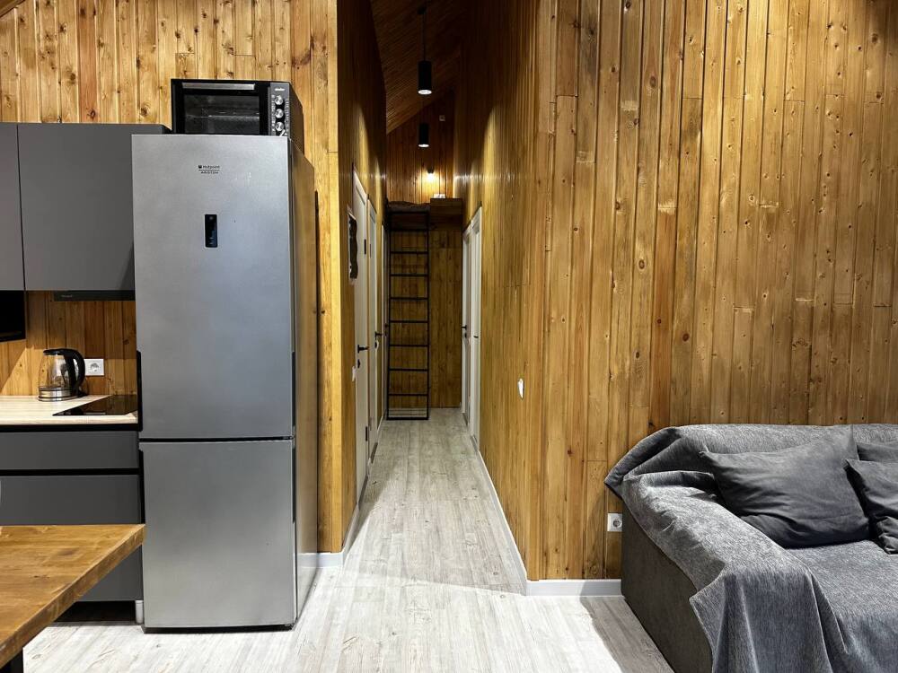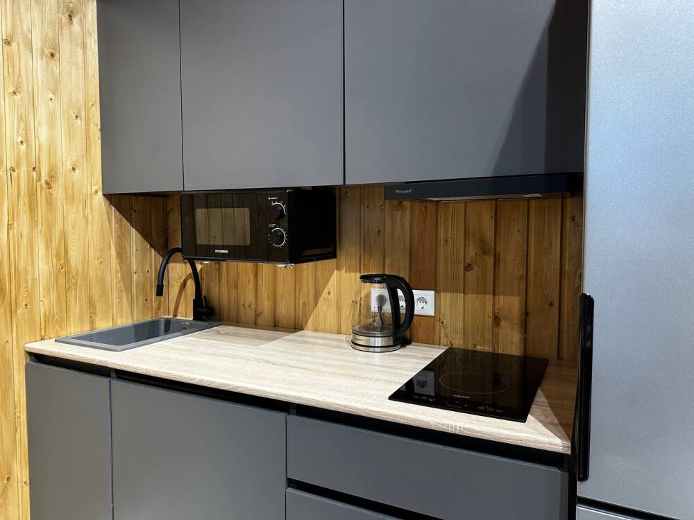 - Вся техника для комфорта: посудомойка, плита, микроволновка, духовка, чайник, большой холодильник.