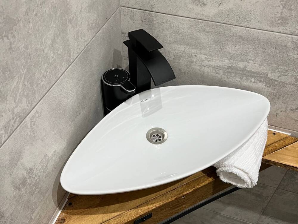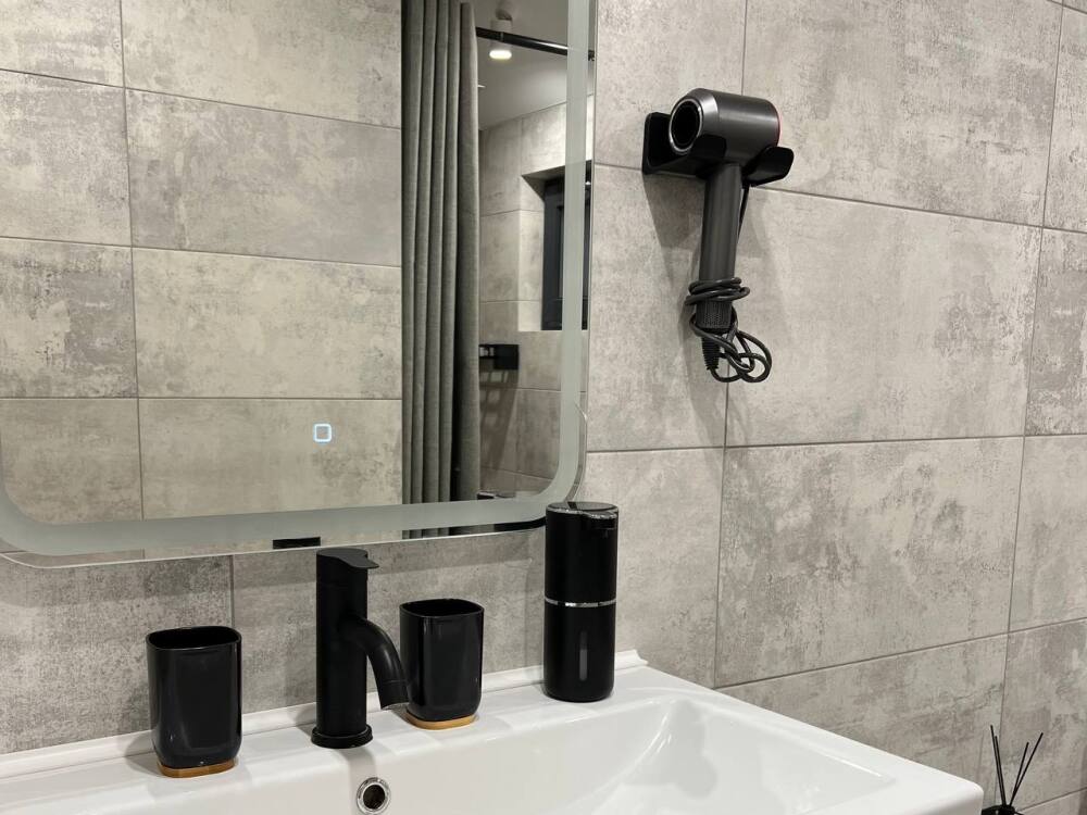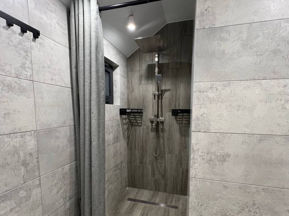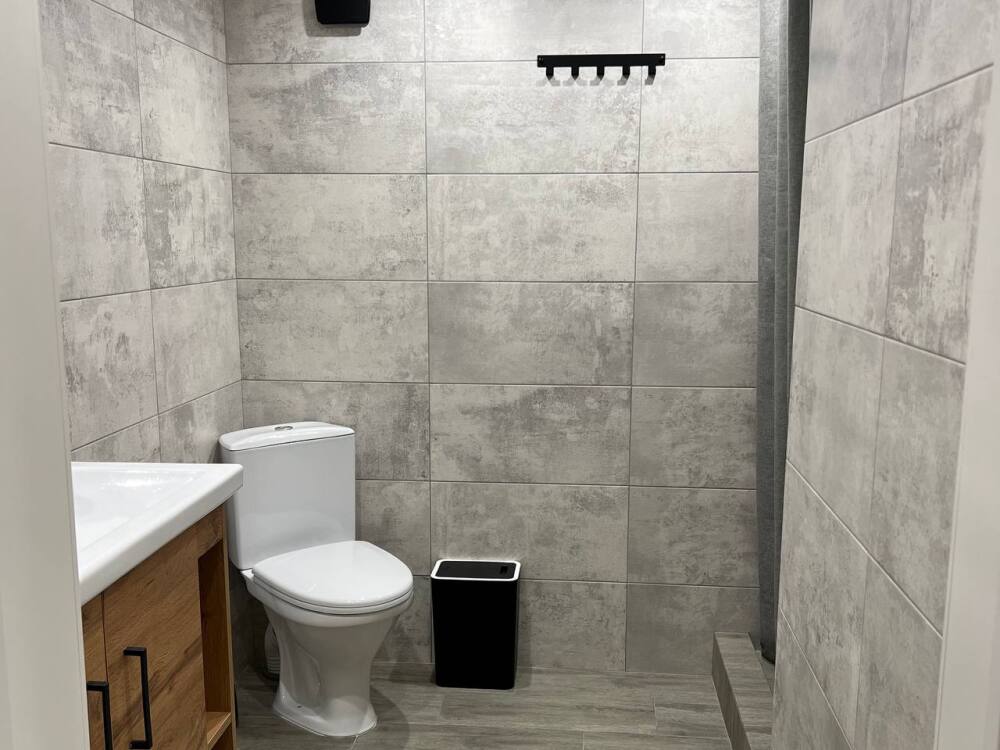 - 2 санузла (душ + унитаз в одном, раковина + унитаз в другом).