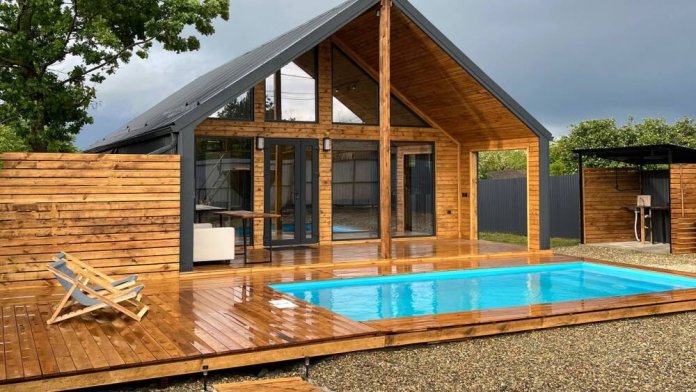 Уютный Барн-хаус у леса с бассейном и банным чаном– идеальный отдых для двух семей.