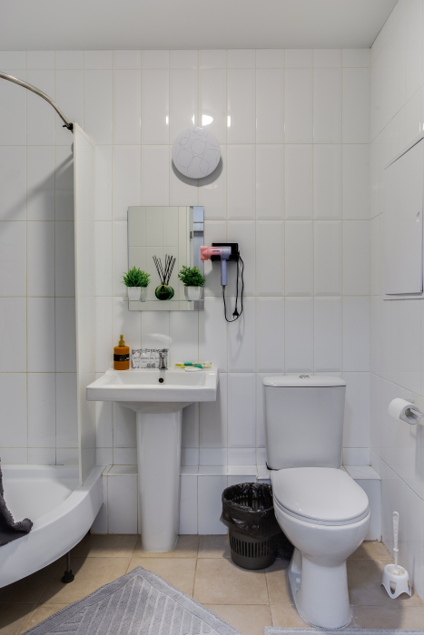 - Бытовая техника: холодильник, микроволновка, духовка, варочная панель, утюг, фен, гладильная доска, стиральная машина