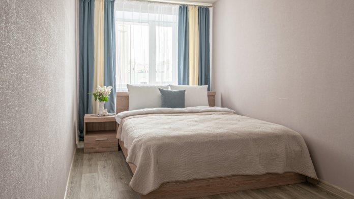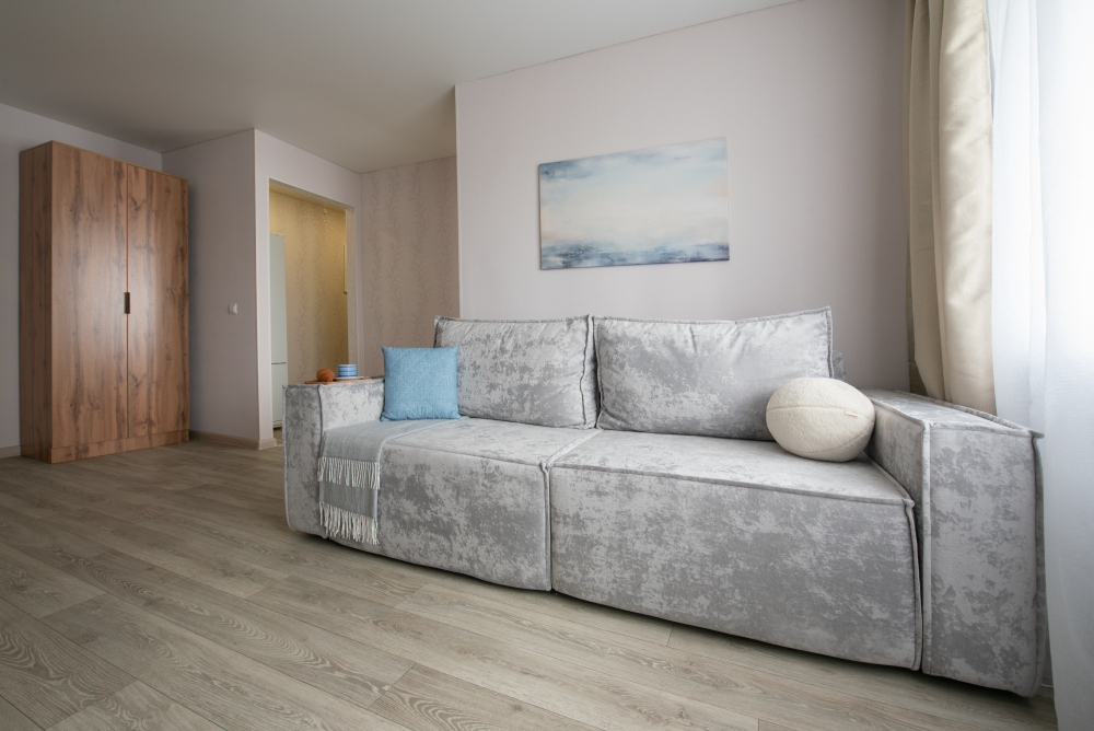 - Удобную двуспальную кровать с ортопедическим матрасом и раскладной диван для двух дополнительных мест.
