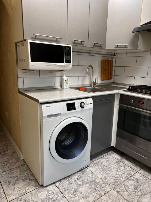 В квартире есть все для комфортного проживания. Удобная двуспальная кровать, телевизор, шкаф, комод. На кухне электрочайник, микроволновка, холодильник, духовой шкаф, газовая плита, вся необходимая посуда и принадлежности. Стиральная машина, утюг, фен. Чистое постельное бельё.
