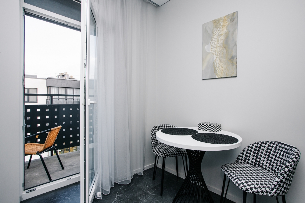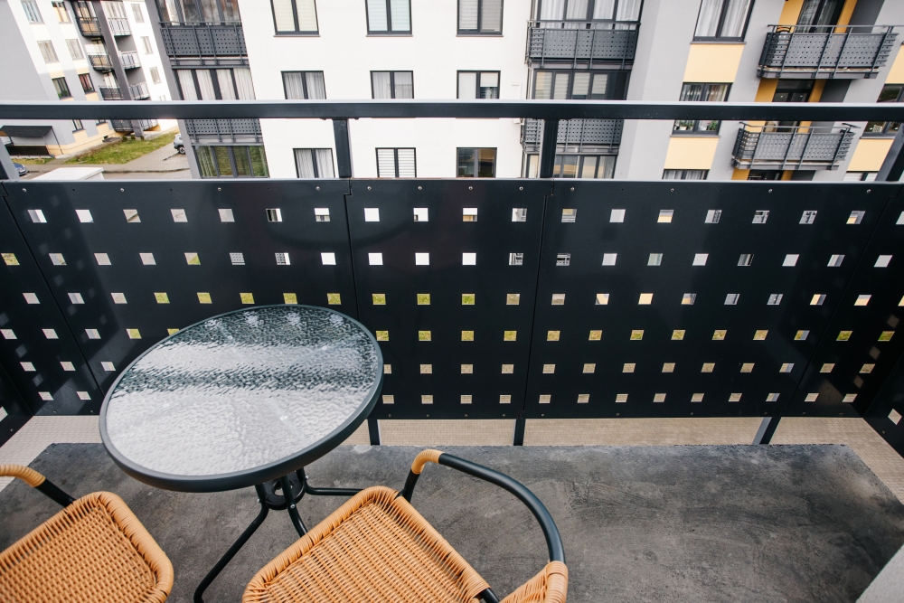 В квартире есть: открытый балкон с зоной отдыха, фен, телевизор с кабельными каналами и смарт ТВ.