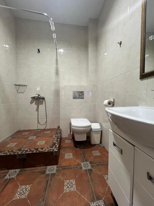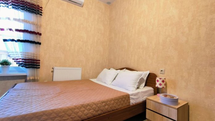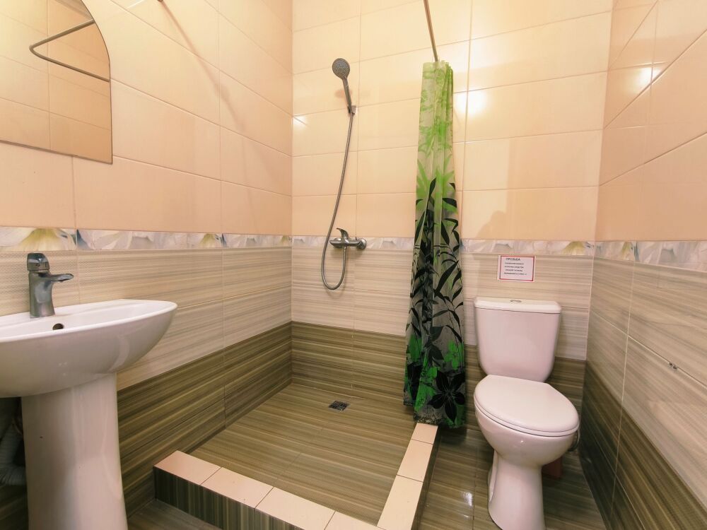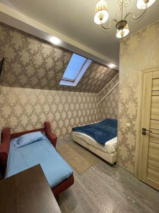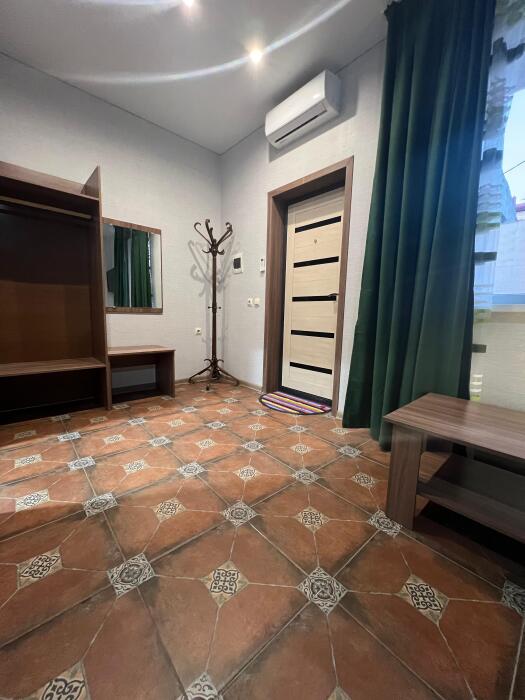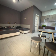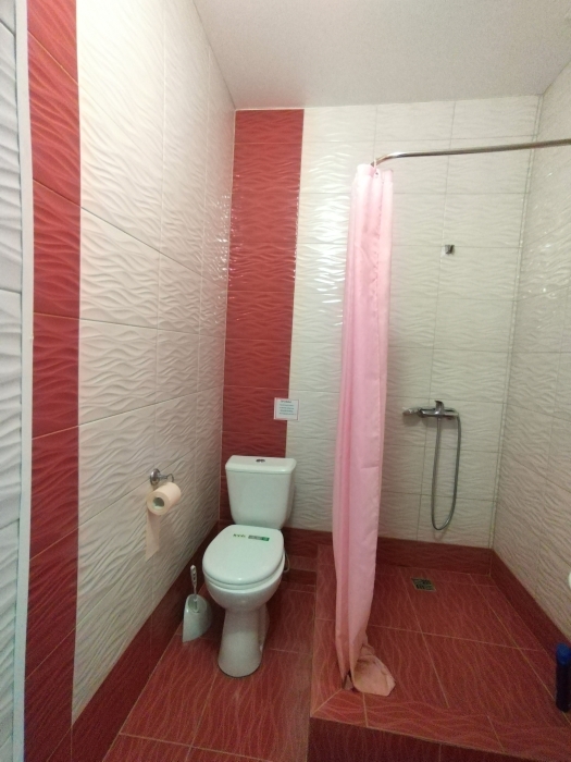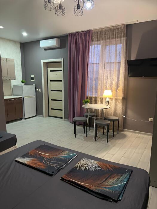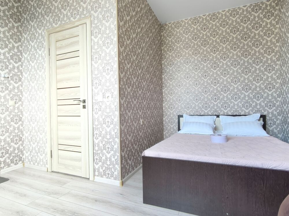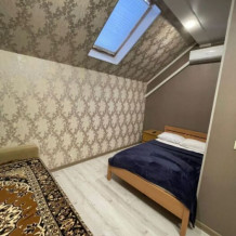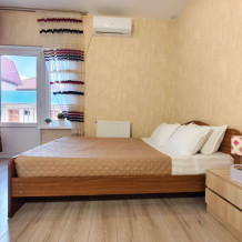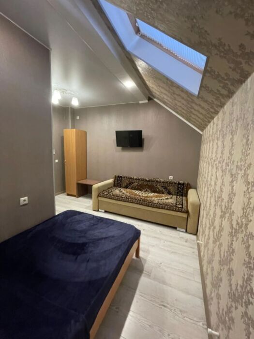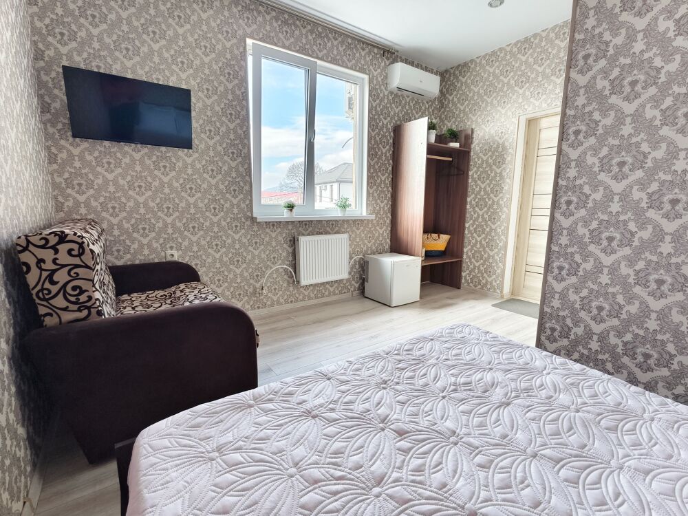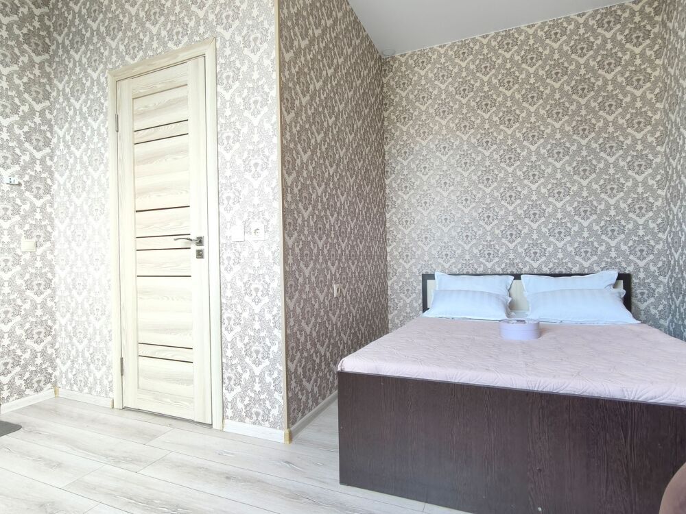 1-комнатный номер с отдельным входом, на первом этаже. Номер оснащен: двуспальная кровать и диван-кровать, прикроватная тумбочка, журнальный столик, стулья, шкаф, ТВ, кондиционер, холодильник. Ванная комната: раковина, зеркало, душ, унитаз.