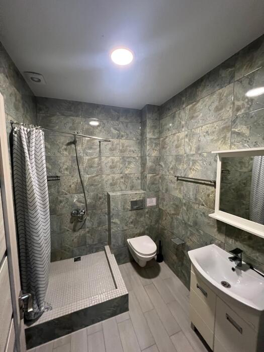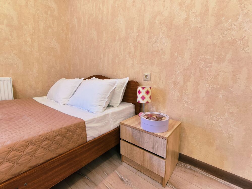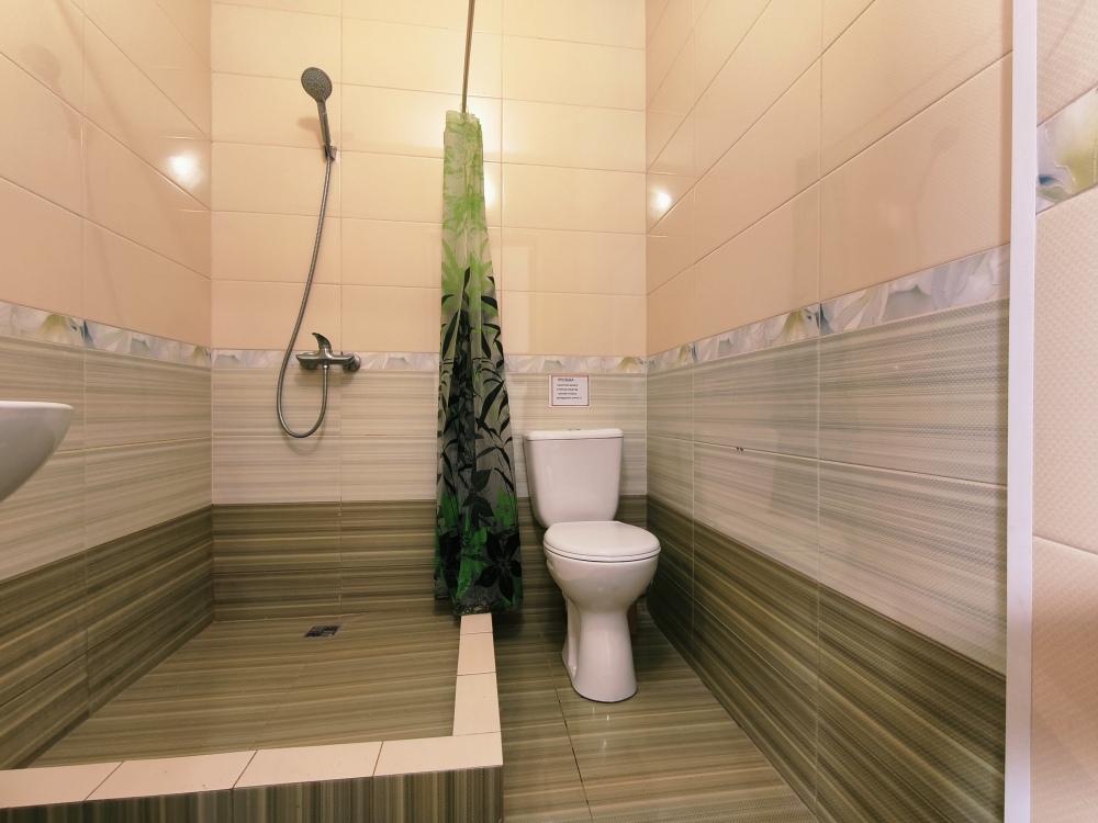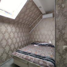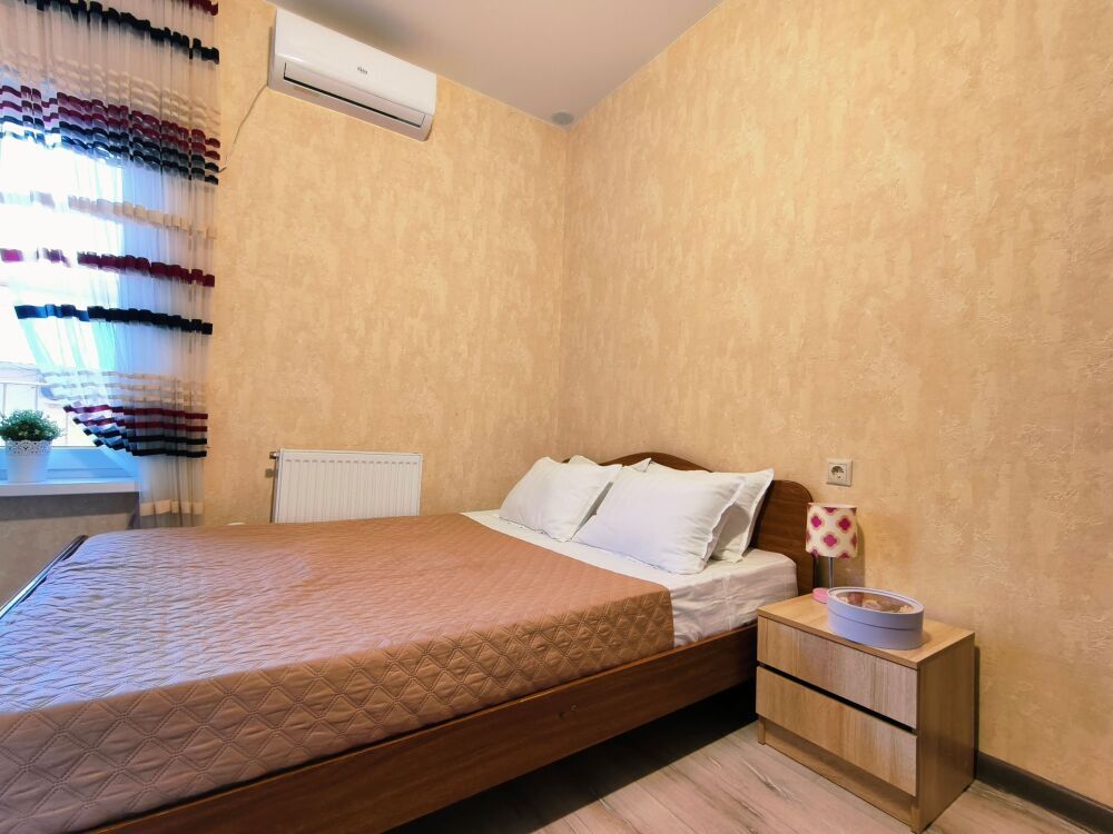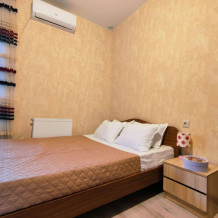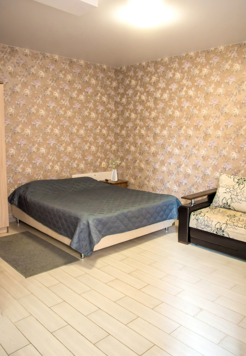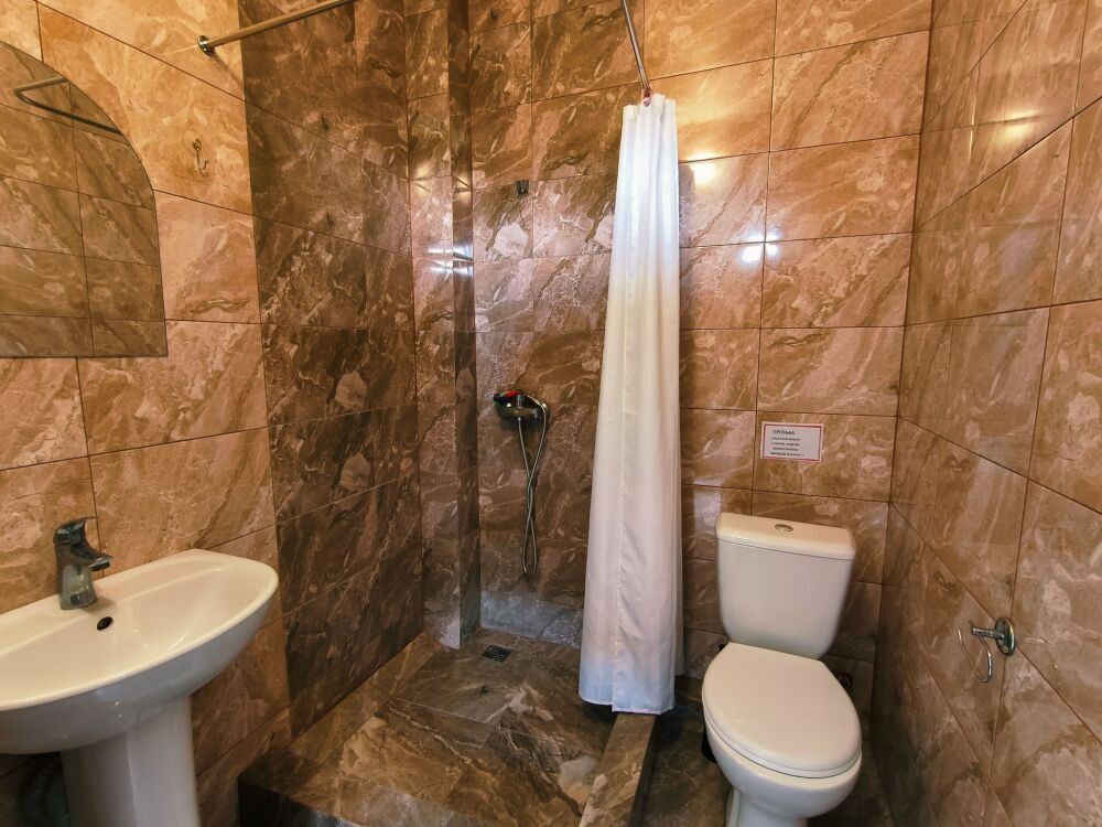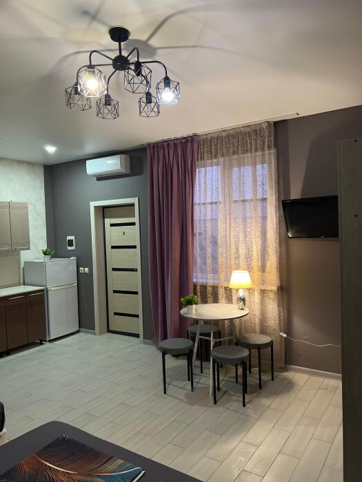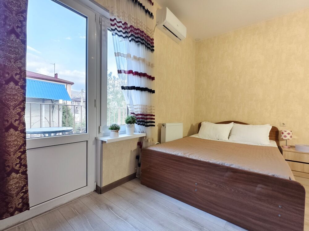 1-комнатный номер с отдельным входом, на первом этаже. Номер оснащен: двуспальная кровать и диван-кровать, прикроватная тумбочка, журнальный столик, стулья, шкаф, ТВ, кондиционер, холодильник. Ванная комната: раковина, зеркало, душ, унитаз.