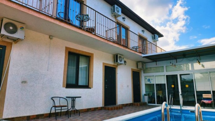 1-комнатный номер с отдельным входом, на первом этаже, с видом на бассейн. Номер оборудован: двуспальная кровать и диван-кровать, прикроватная тумбочка, журнальный столик, стулья, шкаф, ТВ, кондиционер, холодильник. Ванная комната: раковина, зеркало, душ, унитаз.