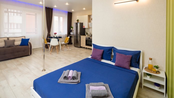 Современные и комфортабельные 2-комнатные апартаменты расположены в жилом комплексе «Баргузин» в центре города. Во дворе есть большая детская площадка, рядом - автостоянка, супермаркет «Слата», банки, рестораны, кафе, салон красоты, фитнес-клуб. Хорошее транспортное сообщение. Кинотеатр «Баргузин», диагностический центр - в 5 минутах ходьбы. До аэропорта 10-15 минут на автомобиле.