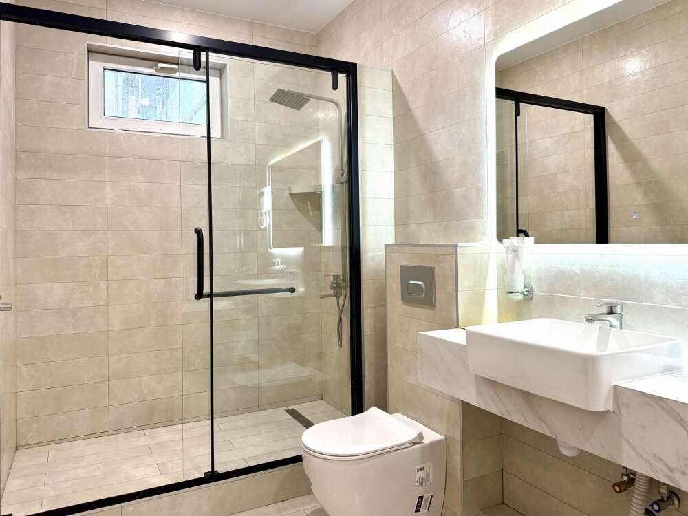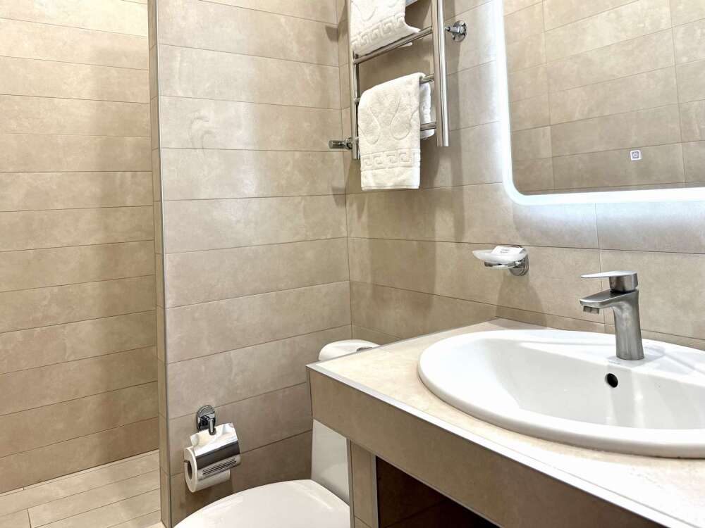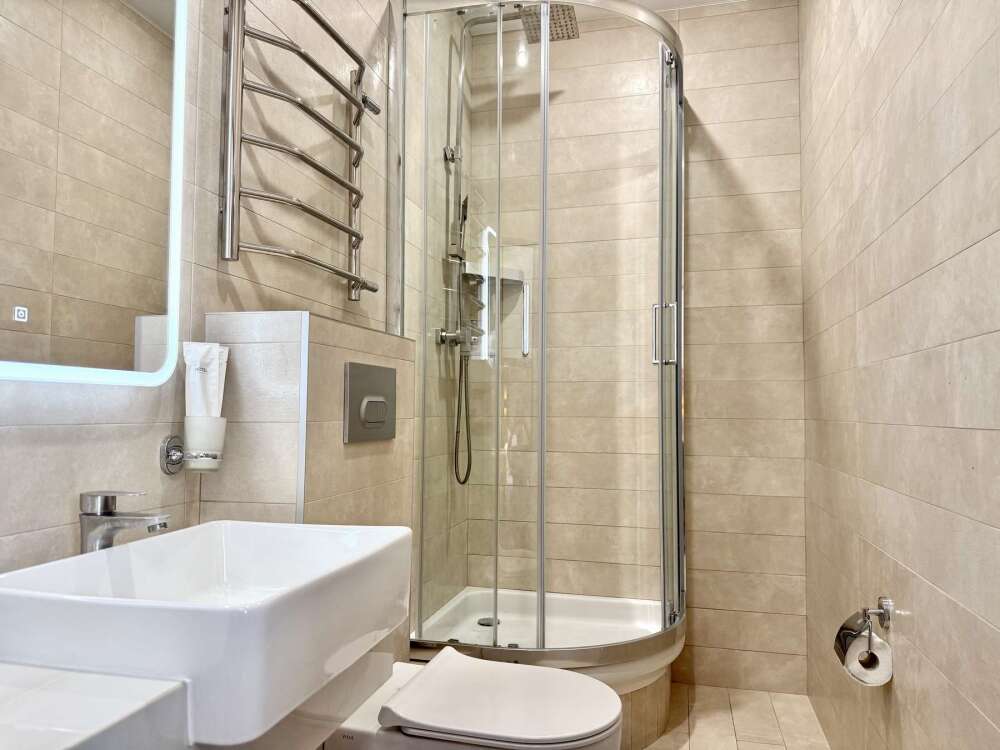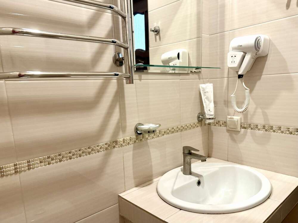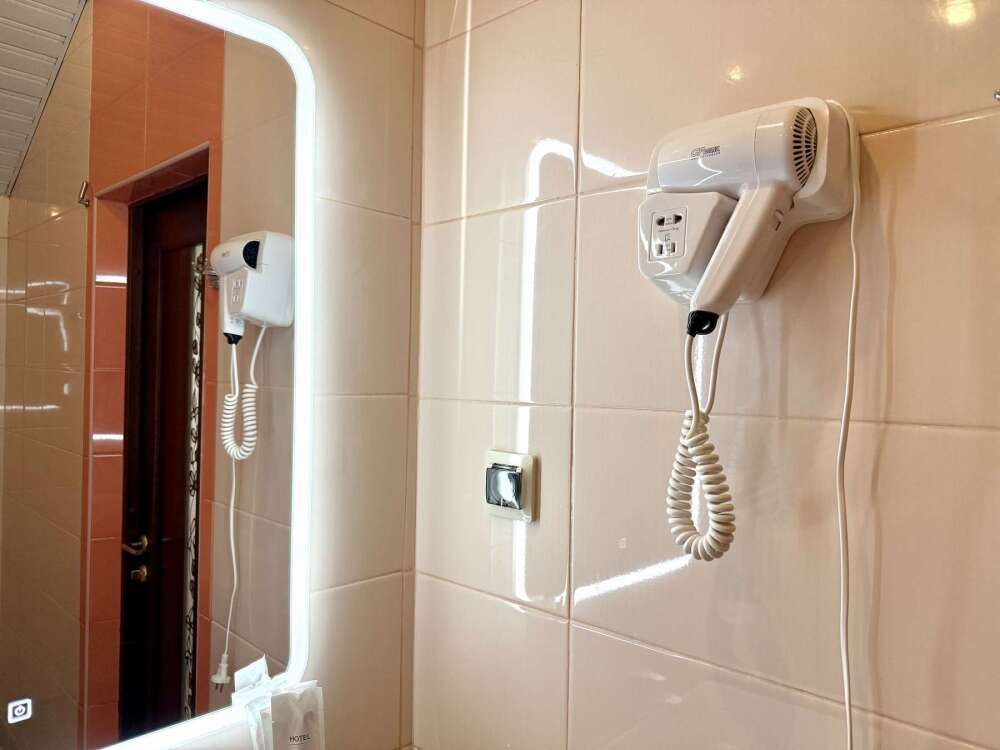 В ванной комнате: душевая кабина, индивидуальные одноразовые туалетные принадлежности (шампунь, мыло, гель), комплект полотенец, фен.