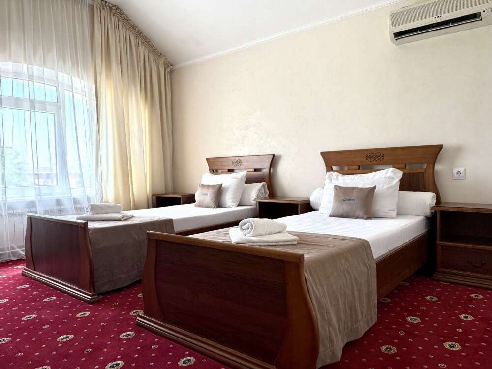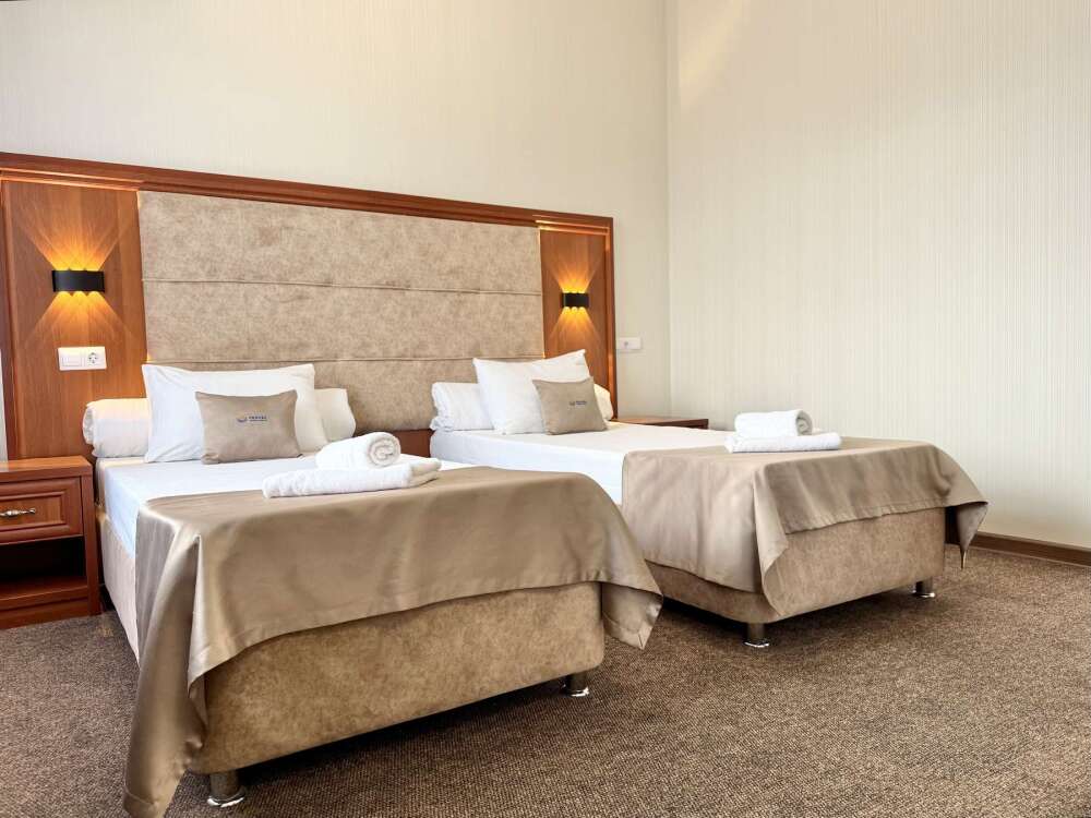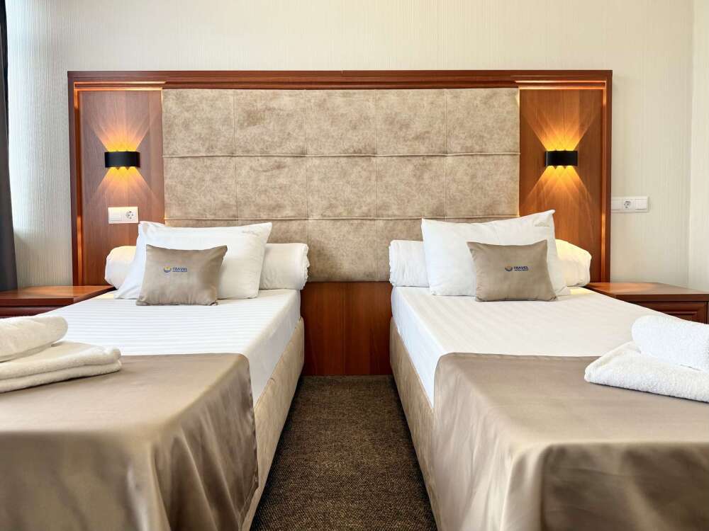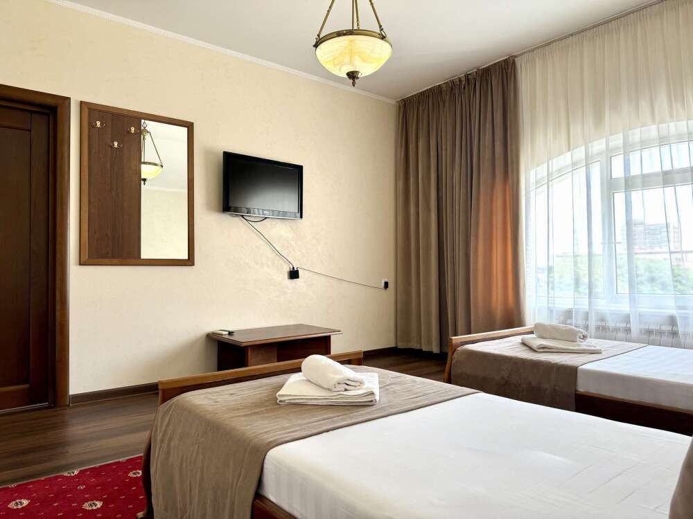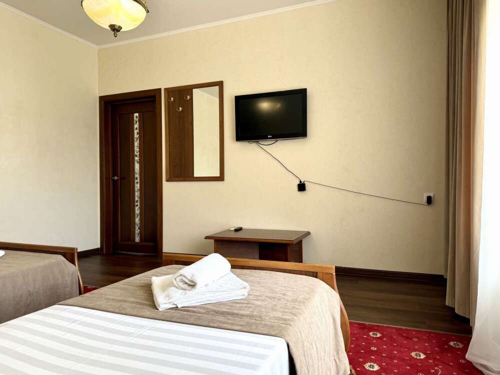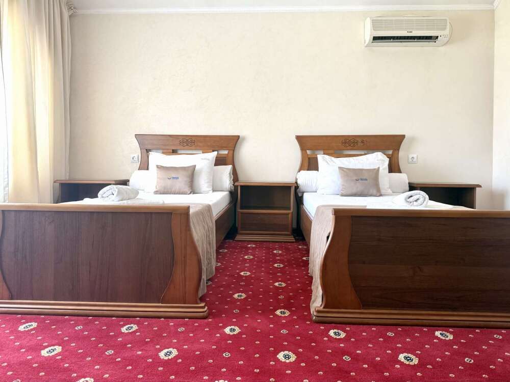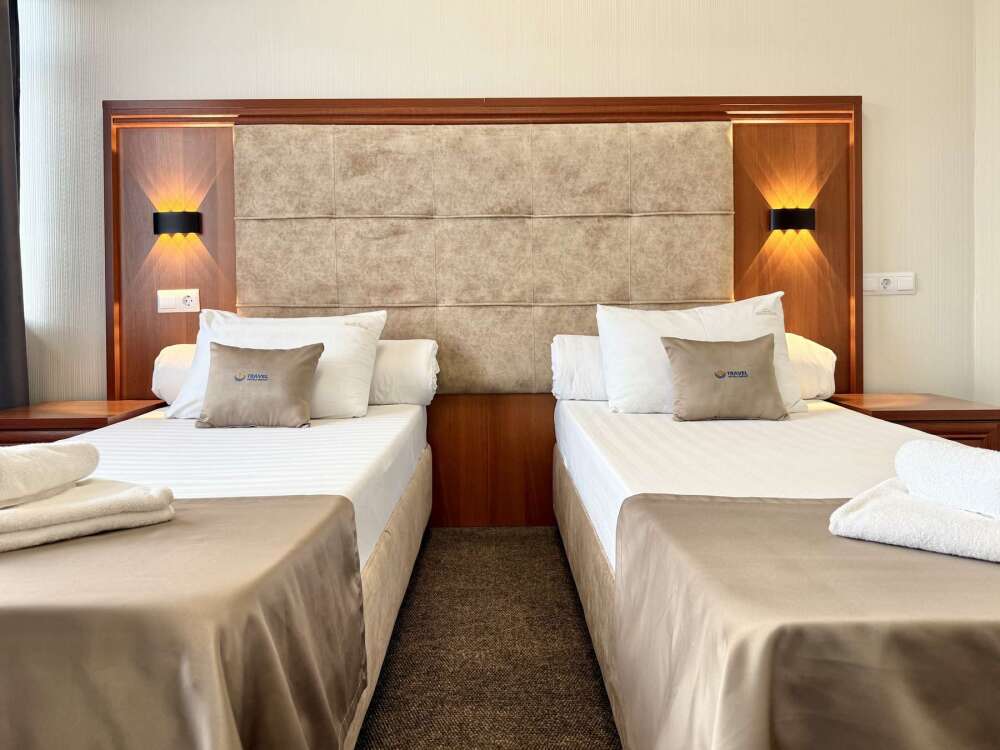 В номере две раздельные односпальные кровати, кондиционер, телевизор, бесплатный wi-fi, письменный стол, мини-холодильник, электрочайник, телефон для связи с ресепшн.