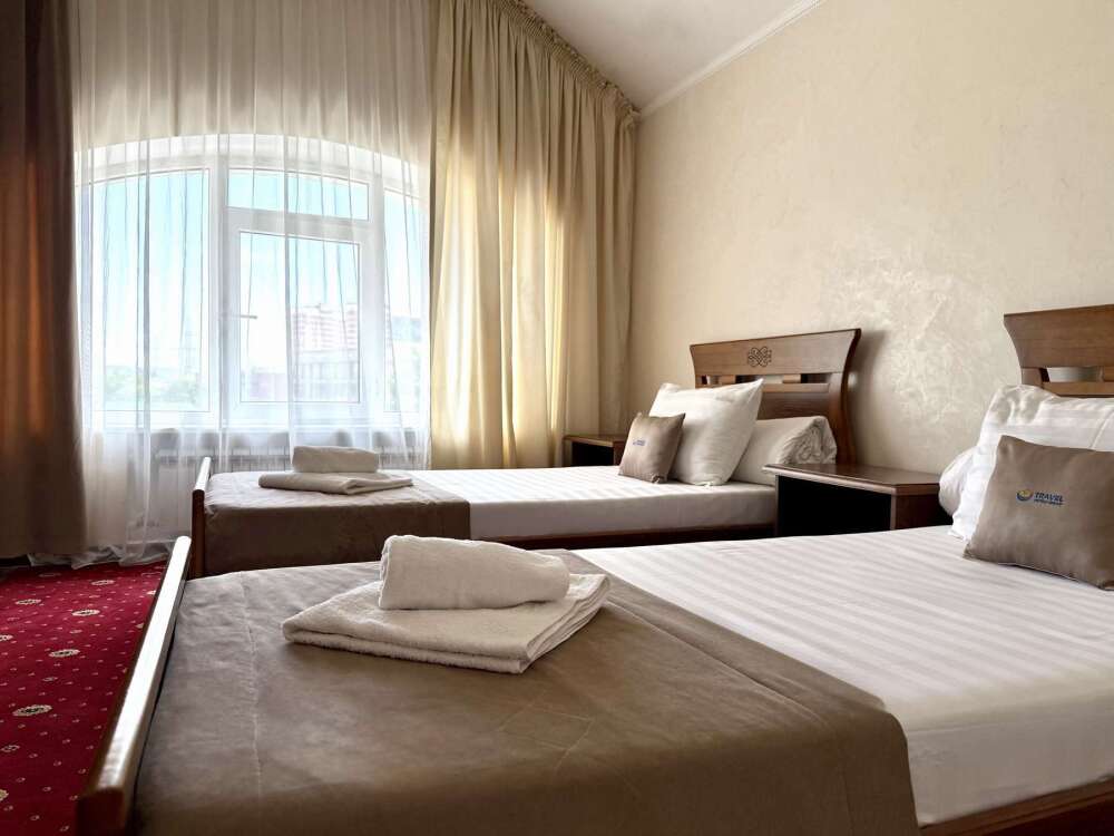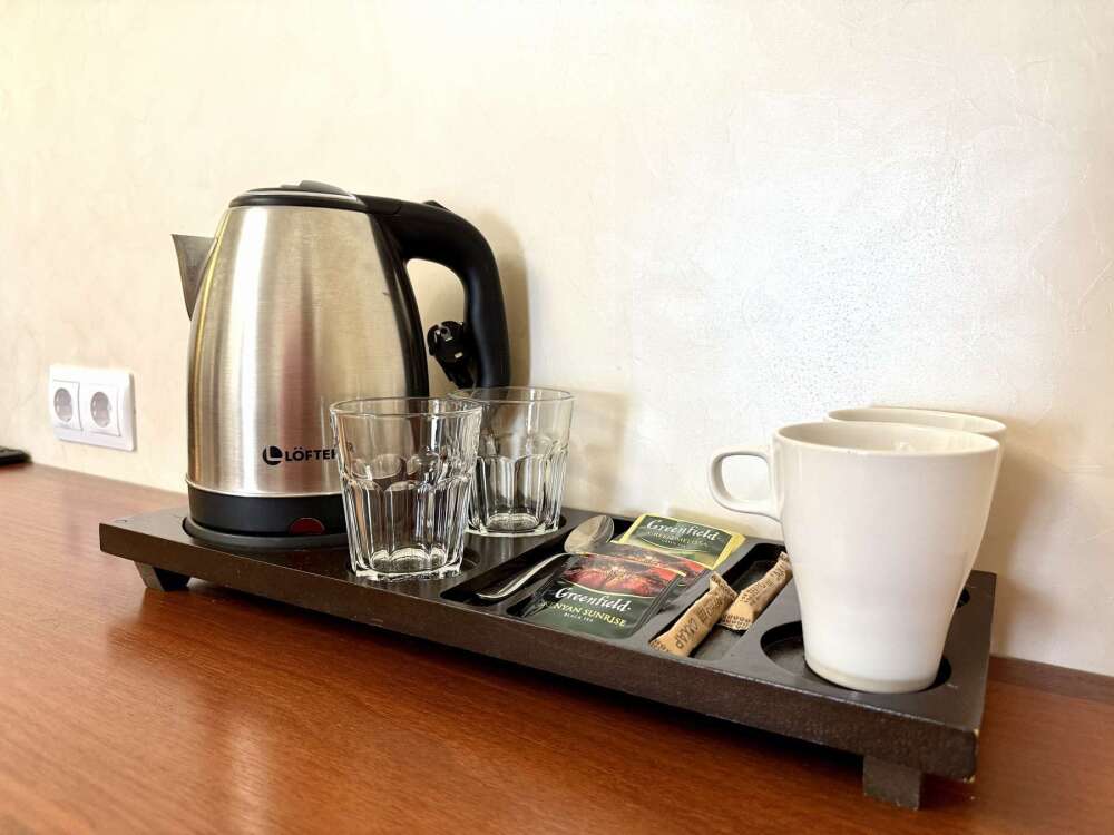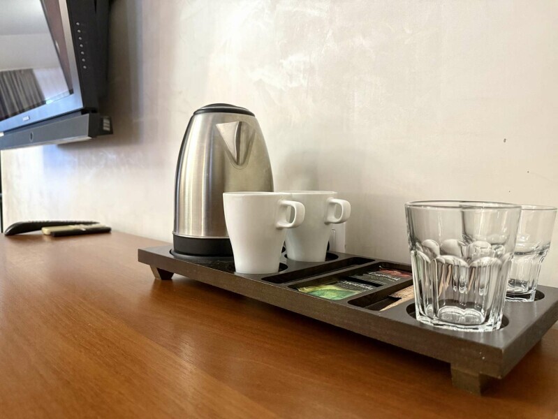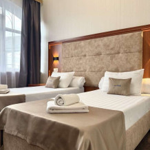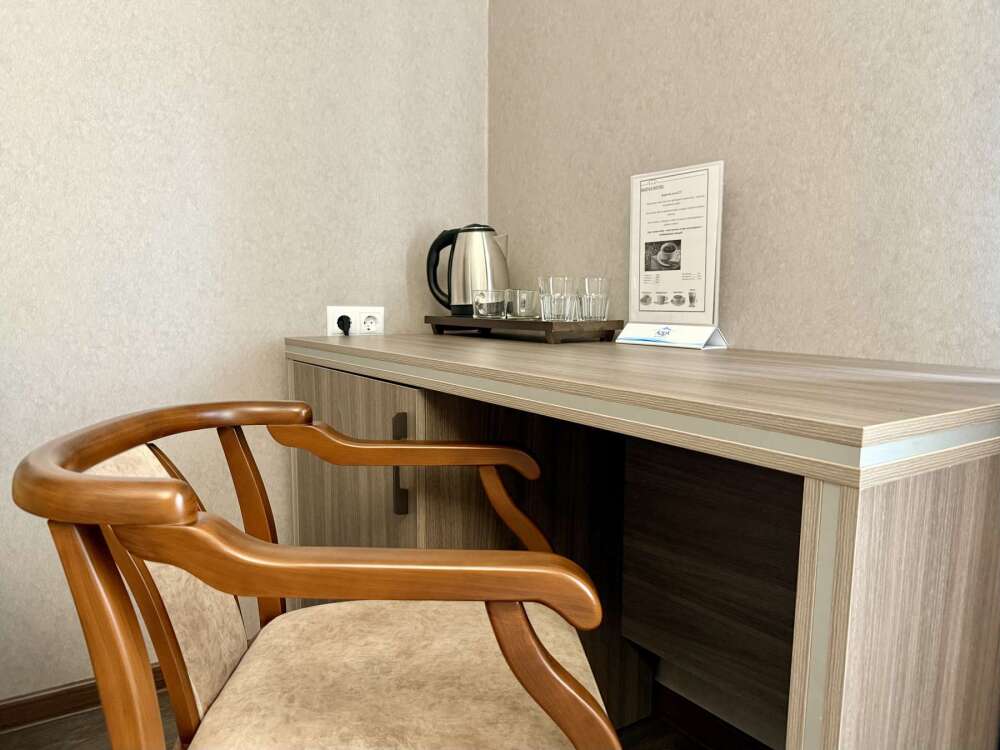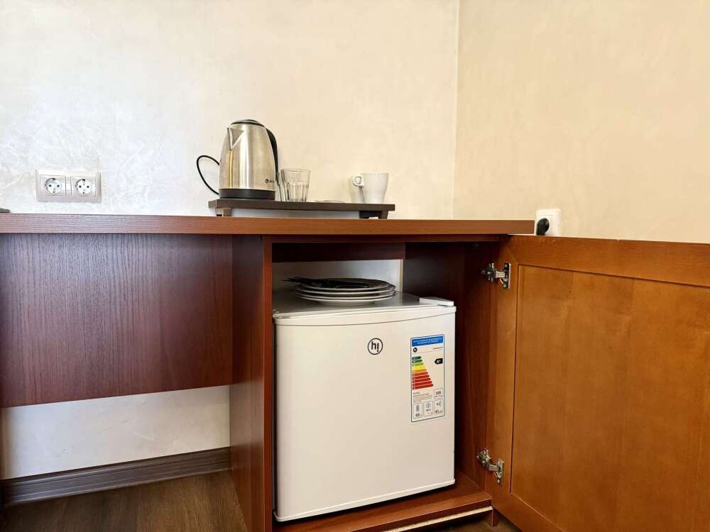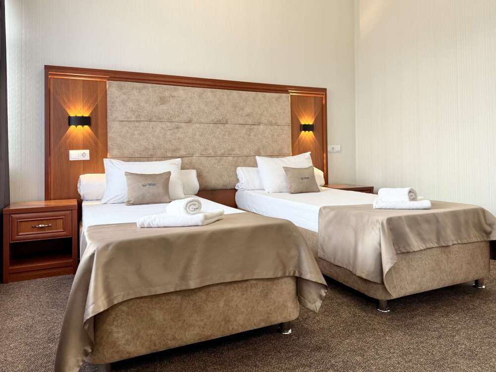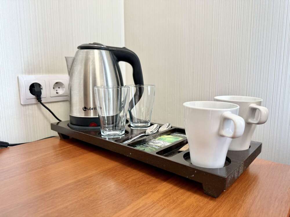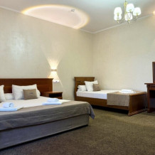В номере две раздельные односпальные кровати, кондиционер, телевизор, бесплатный wi-fi, письменный стол, мини-холодильник, электрочайник, телефон для связи с ресепшн.