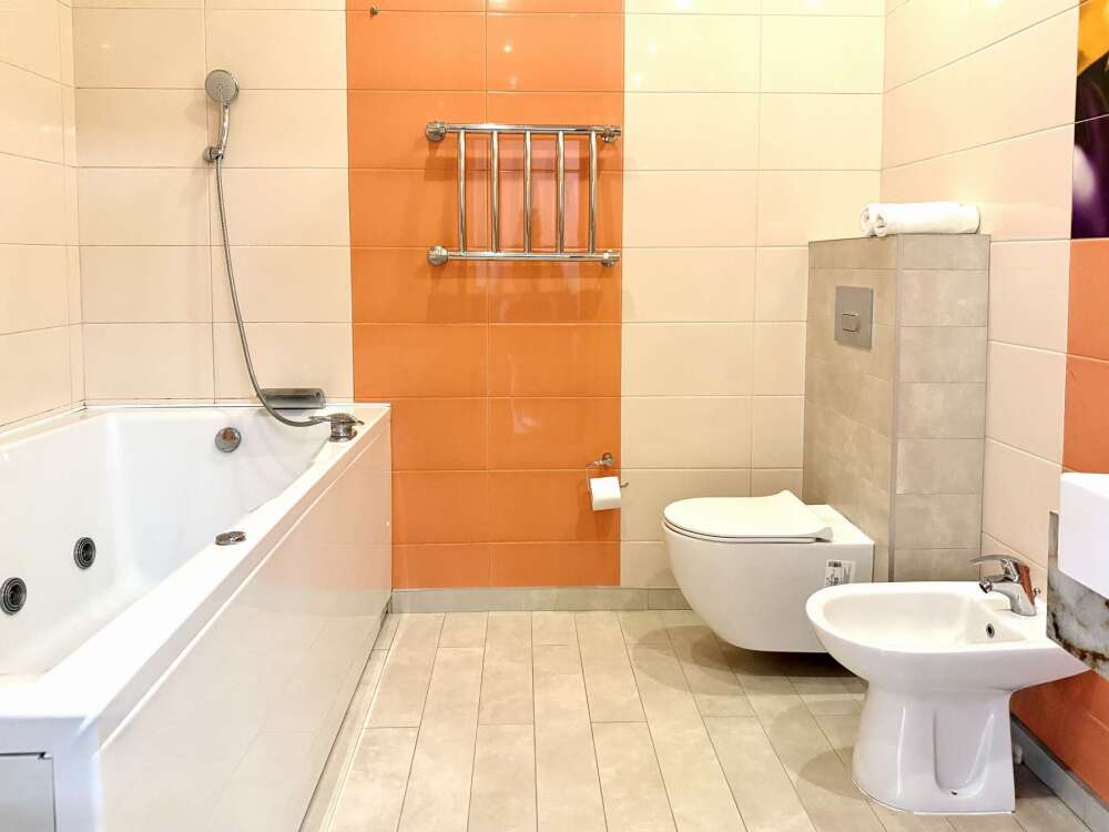 В сан узле ванная , биде, фен. Предоставляются полотенца, тапочки, халаты и гигиенические принадлежности.