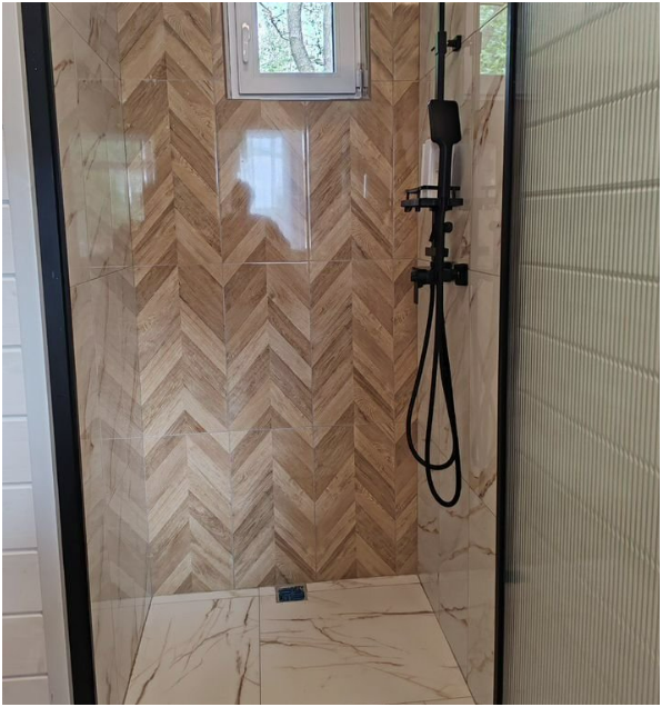 Современный санузел с душевой кабиной и тропическим душем - обеспечивают комфортное проживание.