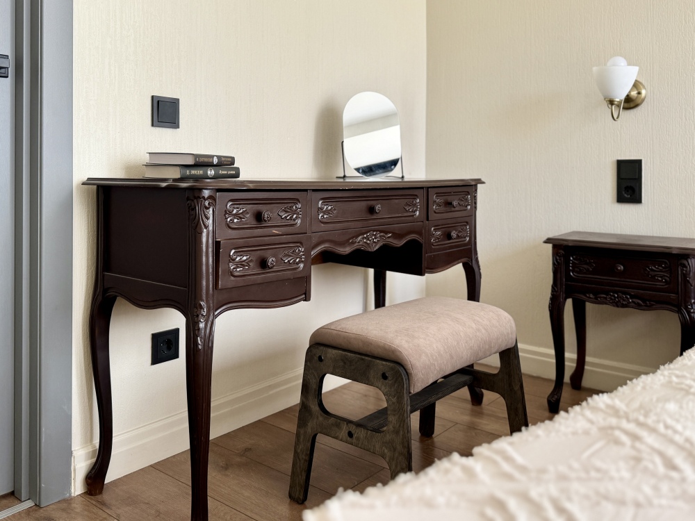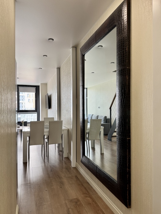 Рады предложить стильные двухэтажные апартаменты с качественным ремонтом, расположенные в современном бизнес-центре с развитой инфраструктурой. Просторные панорамные окна открывают живописный вид на город, а элегантный неоклассический интерьер создаёт атмосферу уюта и статуса.