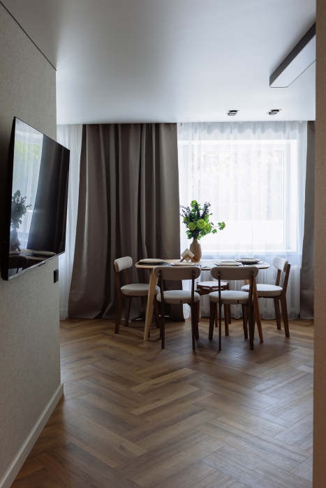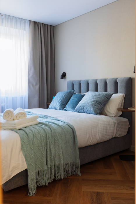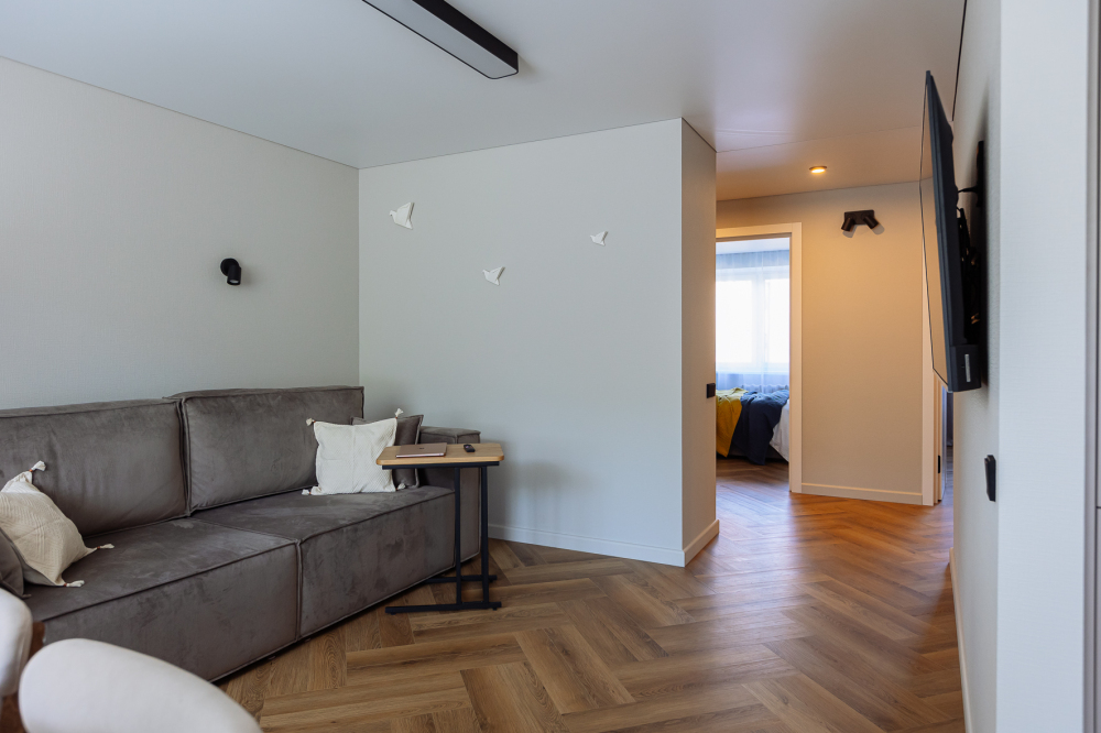 В комнатах Вы сможете с отдохнуть на больших кроватях с комфортными матрасами. В гостиной Вы сможете расположиться на большом и удобном диване за просмотром любимых фильмов.