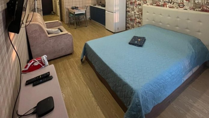 - Студия с двуспальной кроватью и мини диваном отличный вариант для отдыха и проживания с детьми.