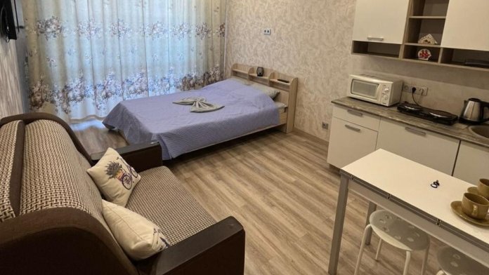 Уютная студия возле аэропорта, высокий этаж, отличный вид. Удобная локация , в любую точку города от 10-20 мин.
