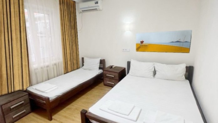 В номере имеется двуспальная кровать и комфортный диван-кровать с ортопедическим основанием на 1−2 гостя (ширина 130см) смарт-телевизор, небольшой холодильник, сплит. система, шкаф для одежды, тумбочки. Сан узел (душ, унитаз, раковина) в номере. На этаже находится общая кухня на 4 номера с обеденными зонами