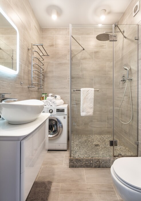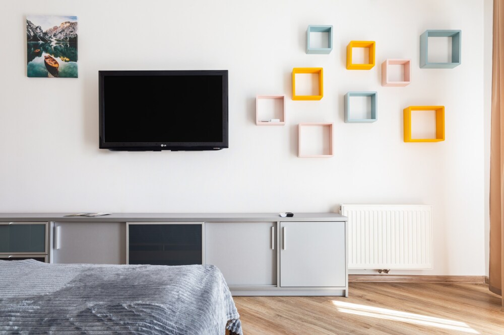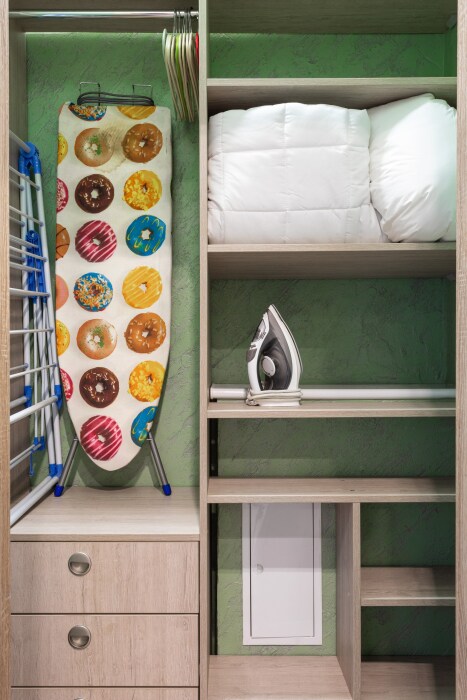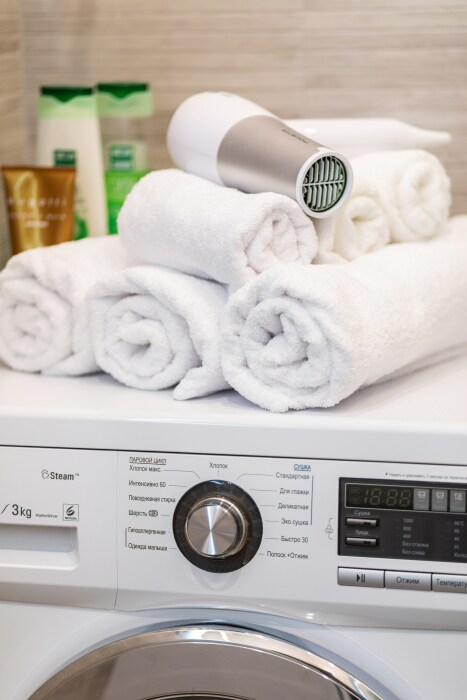 В квартире есть: стиральная машина, фен, утюг, телевизор, пылесос.