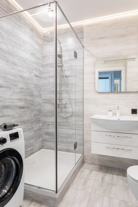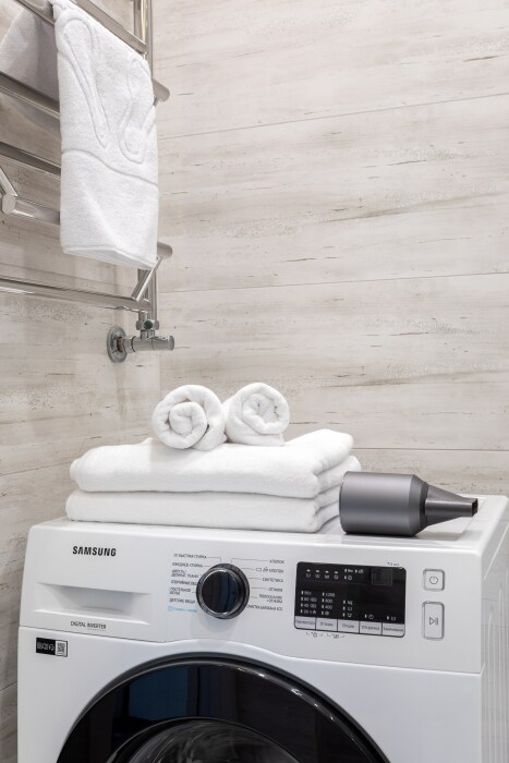 В квартире есть: стиральная машина, фен, утюг, телевизор, пылесос.