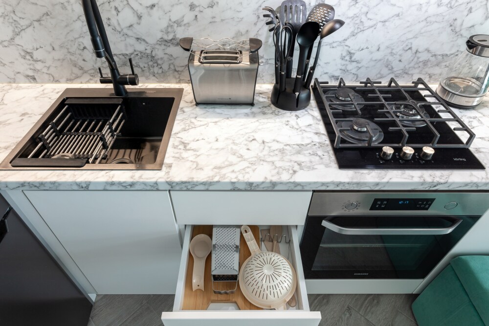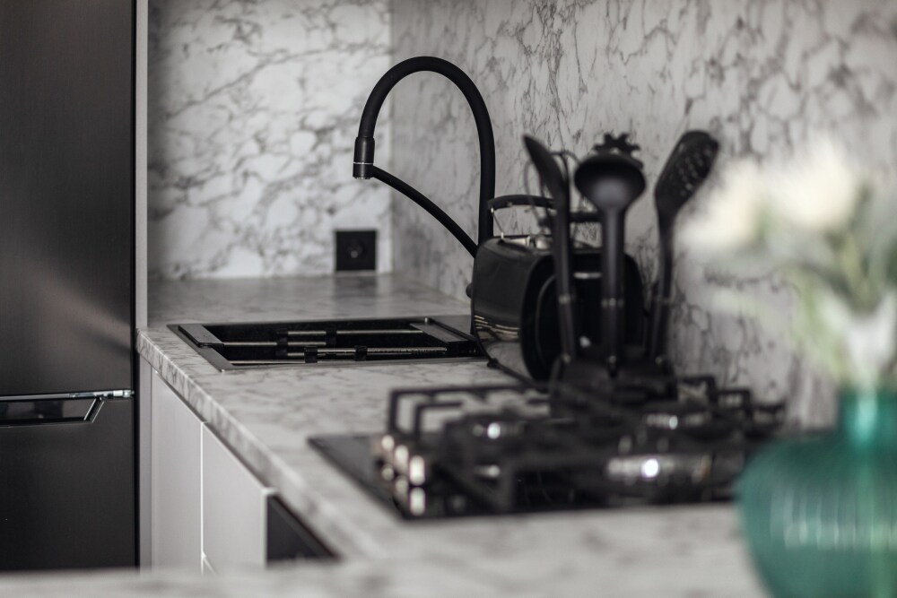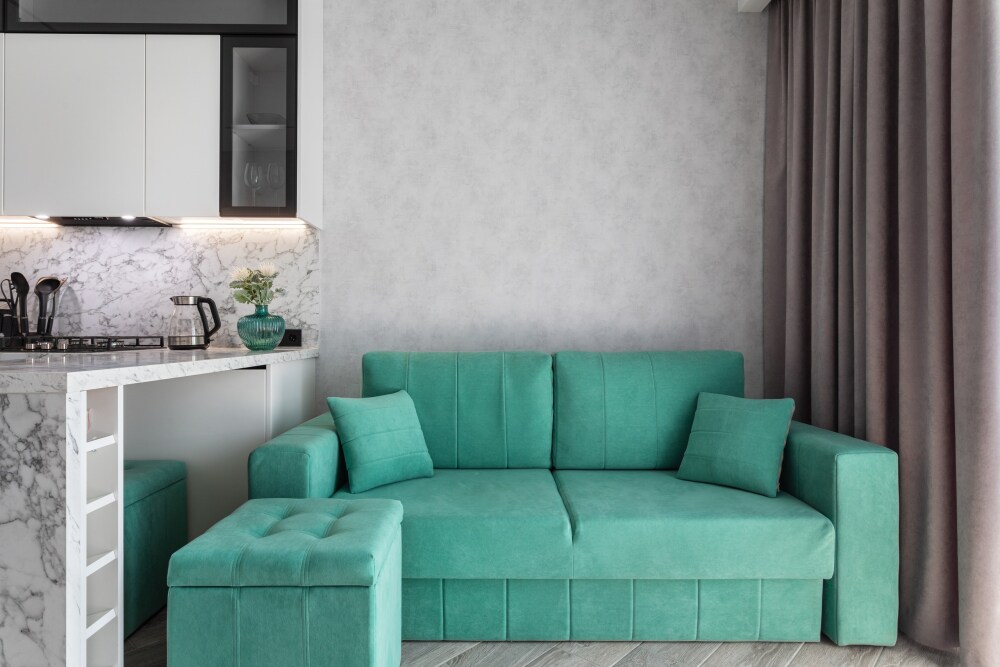 В квартире с комфортом могут разместиться четыре человека (двуспальная кровать и диван-кровать).